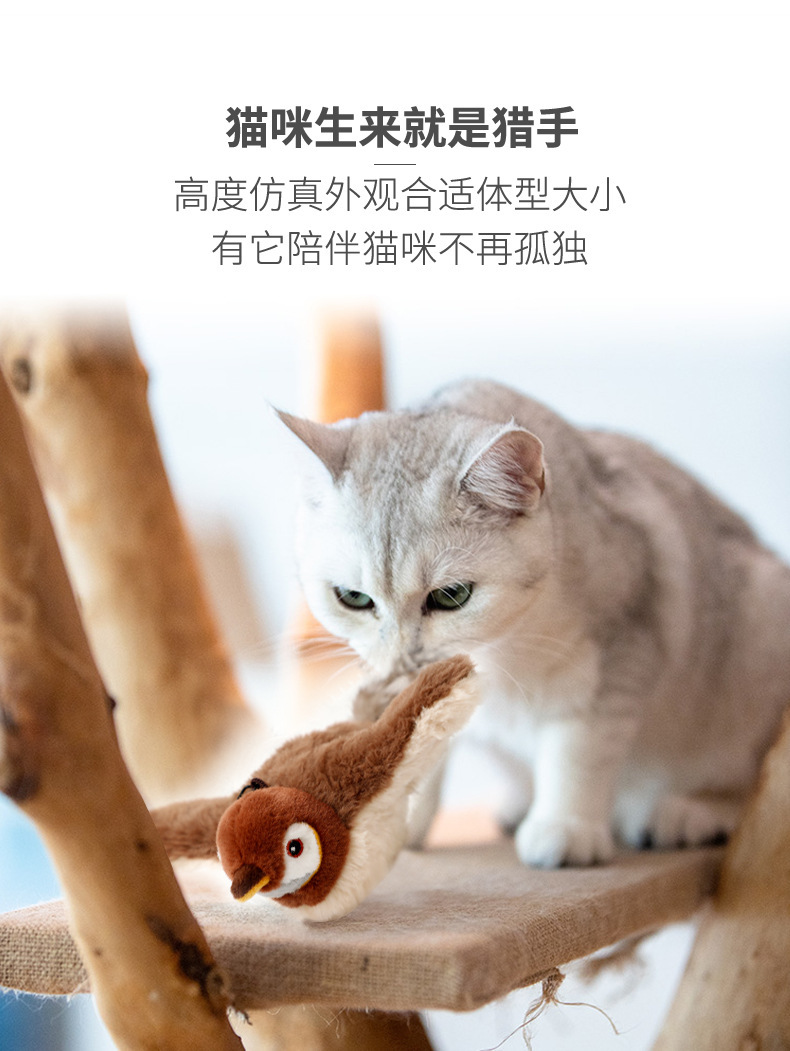 애완 동물 플러시 물림 방지 장난감, 까딱거리는 새, 전기 고양이 장난감, 개 자기 즐거움 시뮬레이션 참새, 국경 간 도매스토어 가기