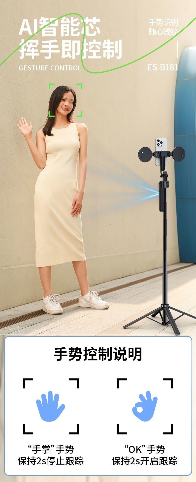 2025 스마트 셀카봉 360도 회전 짐벌 AI 완전 자동 지능형 얼굴 인식 라이브 방송스토어 가기