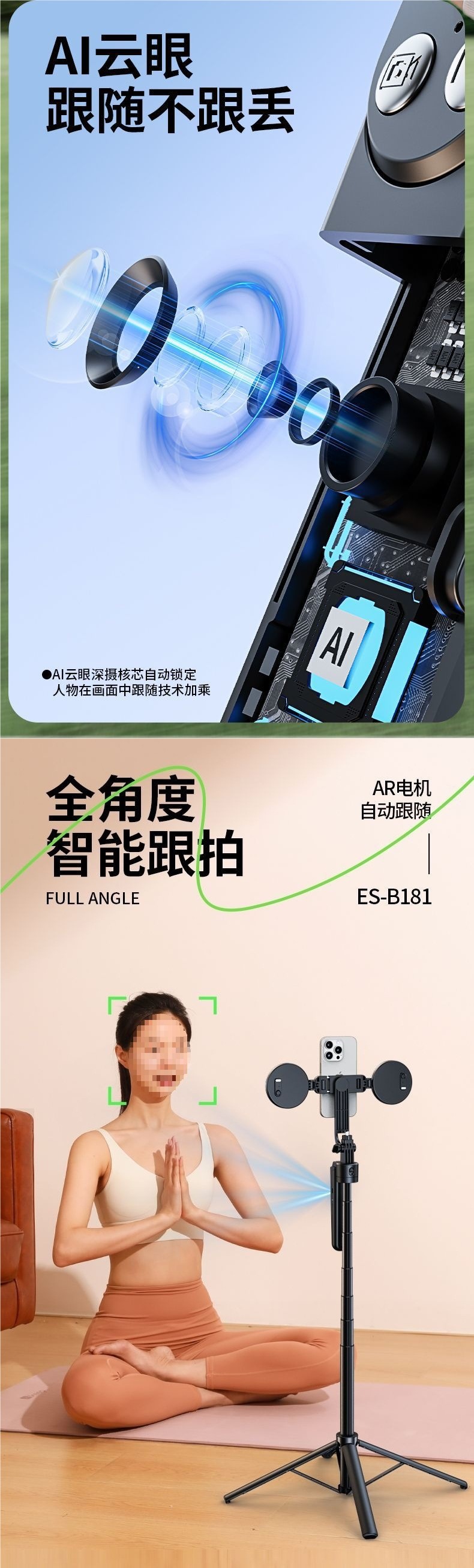 2025 스마트 셀카봉 360도 회전 짐벌 AI 완전 자동 지능형 얼굴 인식 라이브 방송