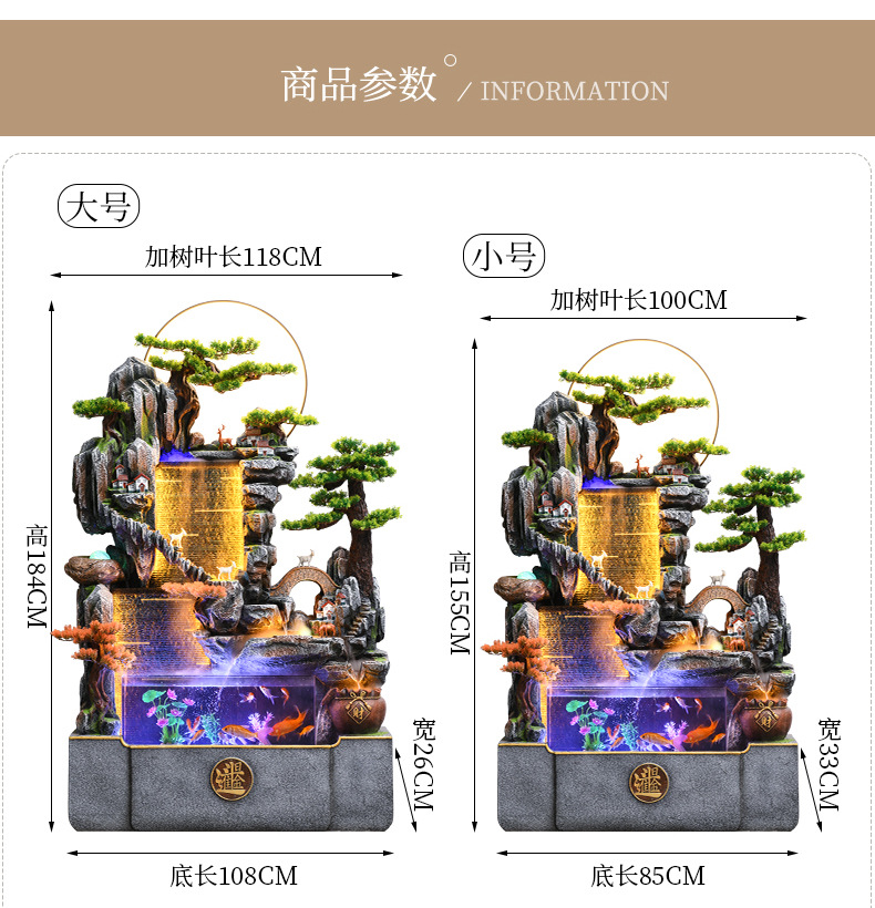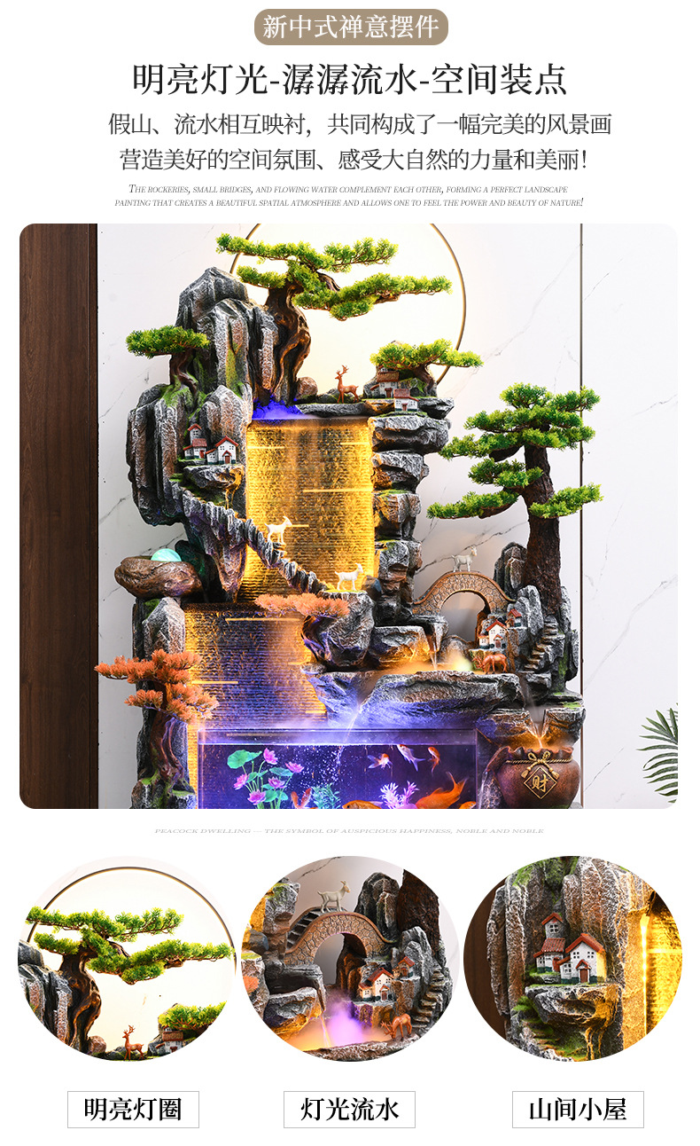 공장 직접 판매 장식품 중국 스타일 가습기 입구 수조 거실 장식 TV 캐비닛 가짜 언덕 순환 물 분수스토어 가기