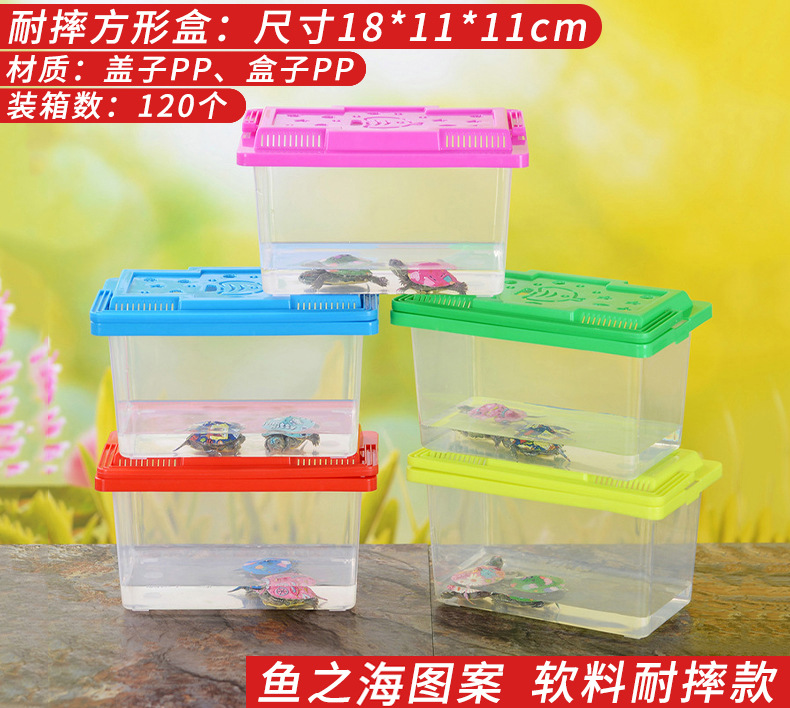 대형, 중형 및 소형 플라스틱 거북이 탱크, 금붕어 탱크, 파충류 사육 애완 동물 상자, 휴대용 투명 운송 상자, 거북이 상자