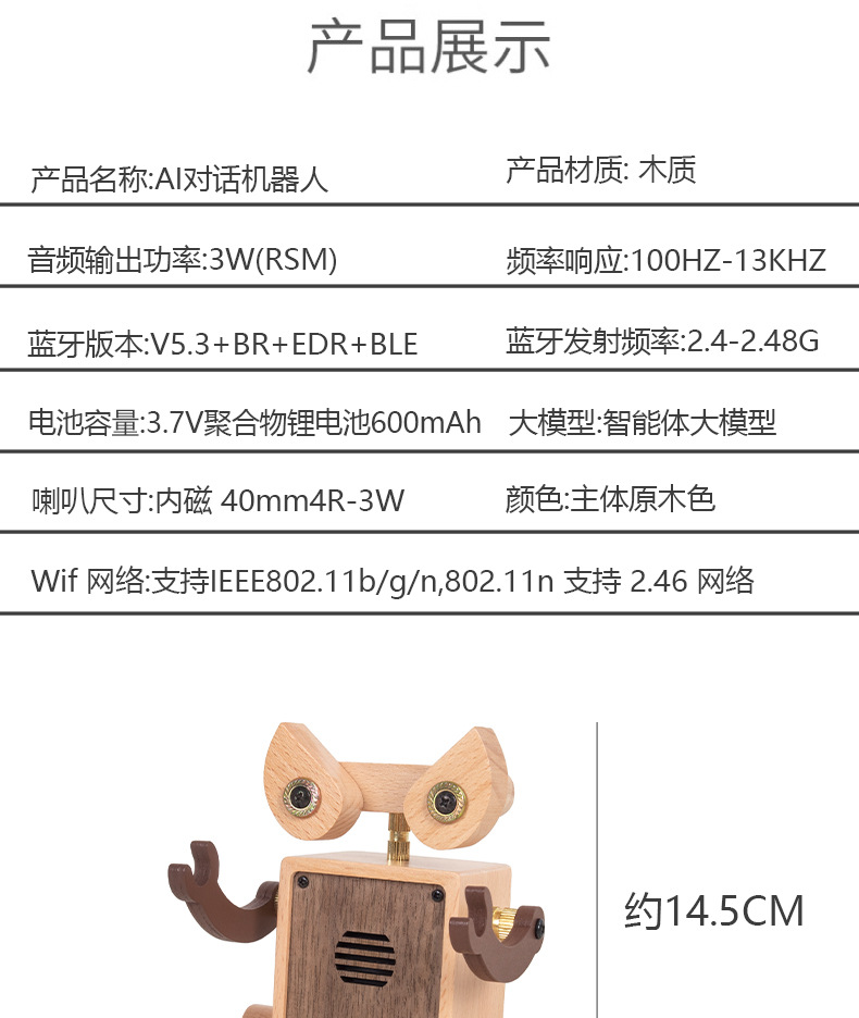 AI 대화 로봇 목조 통신 무브먼트 인공 대화 동반자 채팅 음성 모델 인형 모듈 장난감스토어 가기