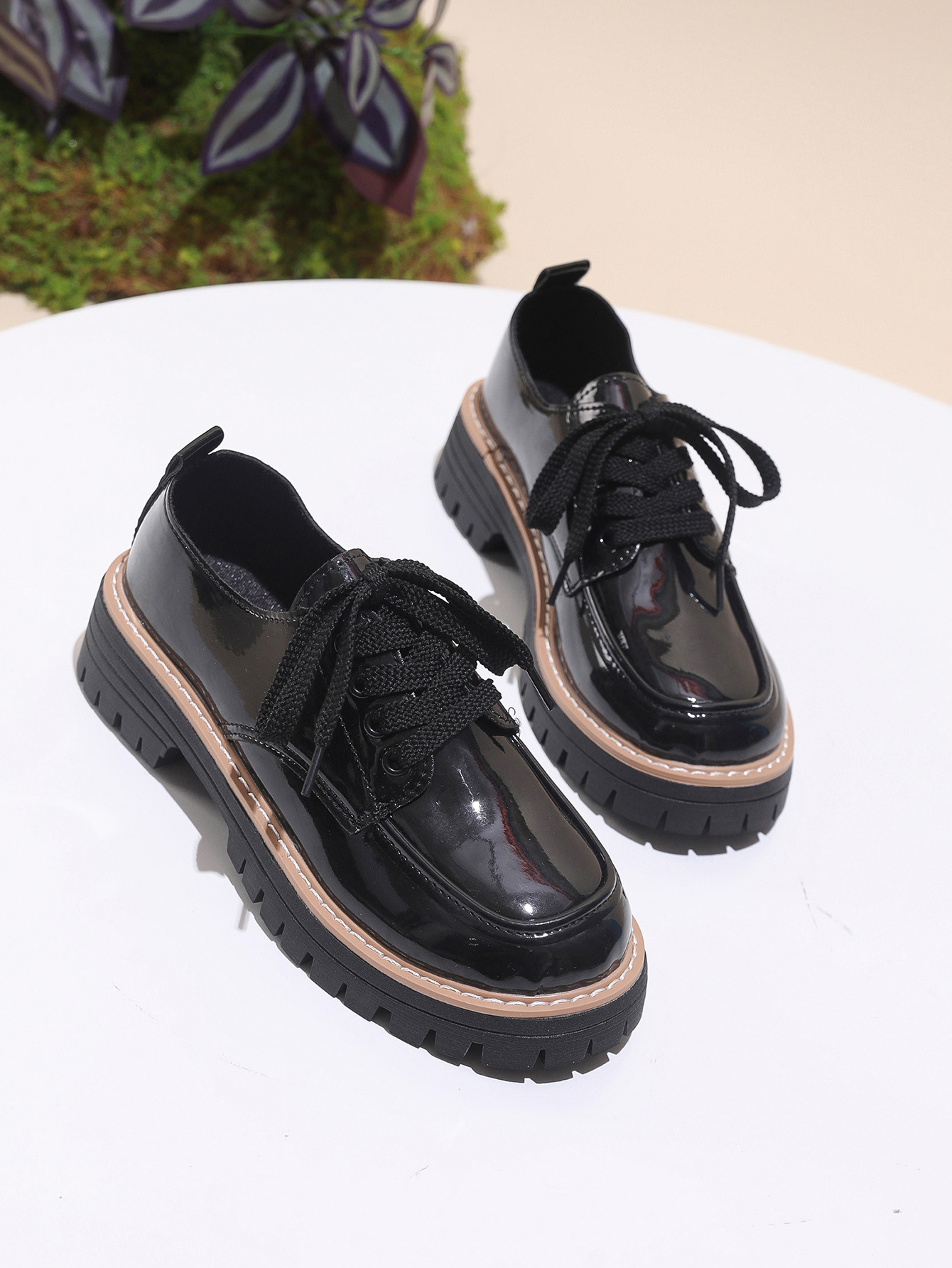 여성을위한 영국 스타일 작은 가죽 신발 2025 봄과 가을 새로운 스타일 라운드 발가락 레이스 업 대형 트렌디 캐주얼 신발 로퍼 도매