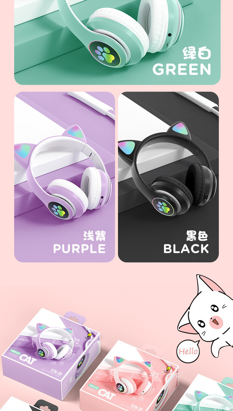 2025 새로운 블루투스 헤드셋 STN-28 빛나는 고양이 귀 고가치 헤드 장착형 무선 헤드셋 게임 고품질스토어 가기