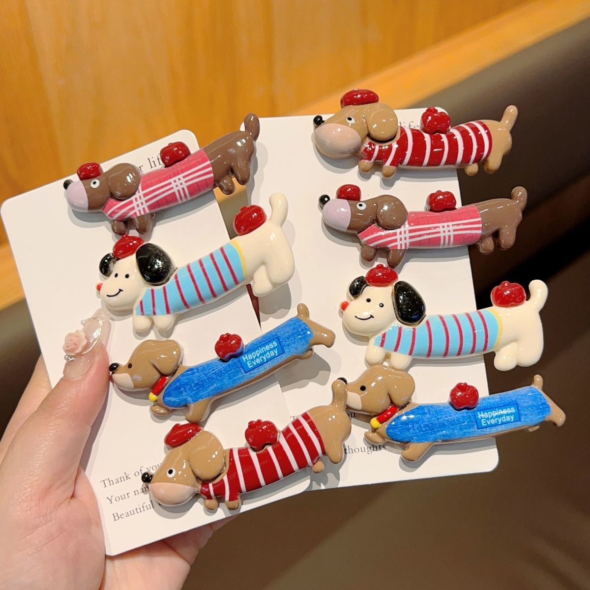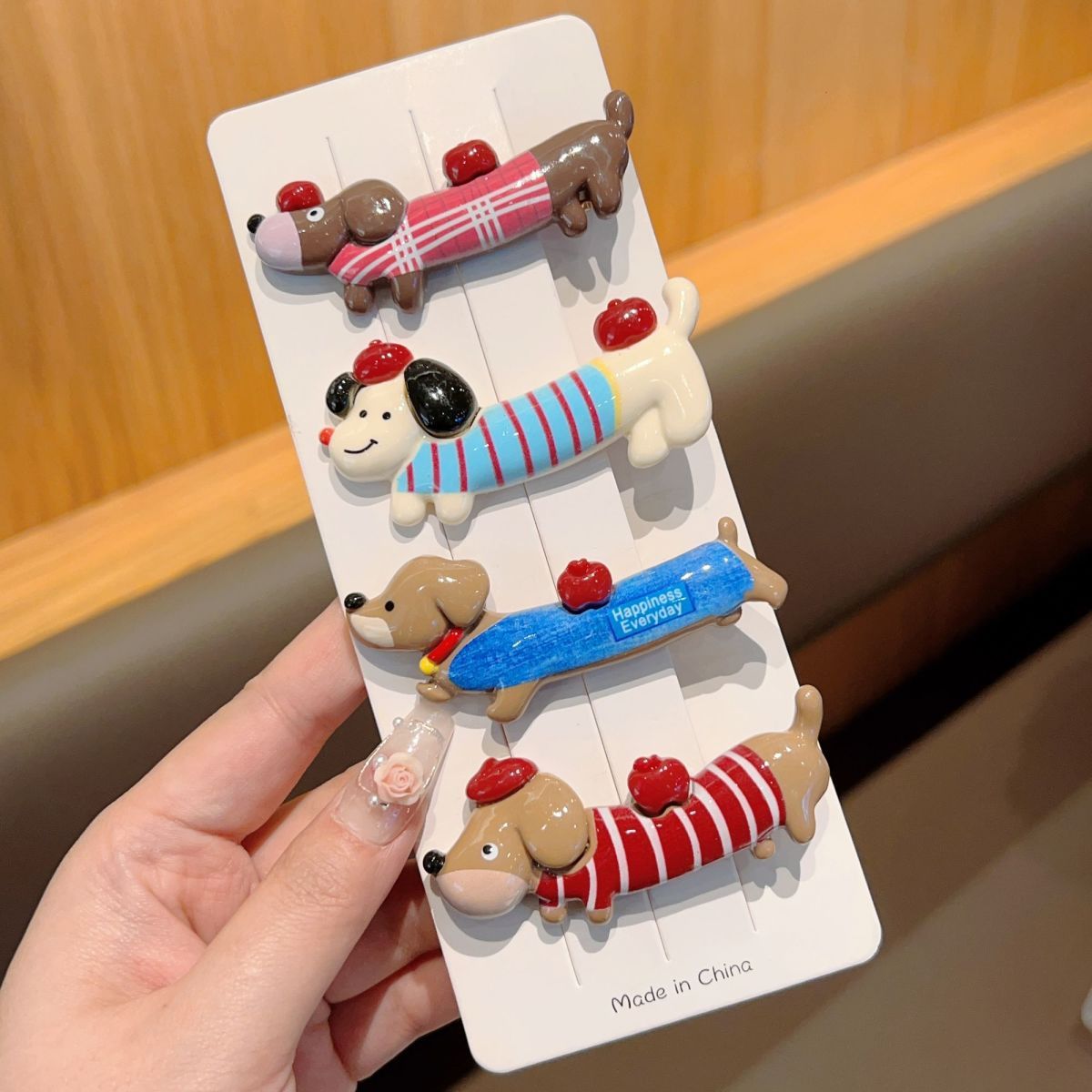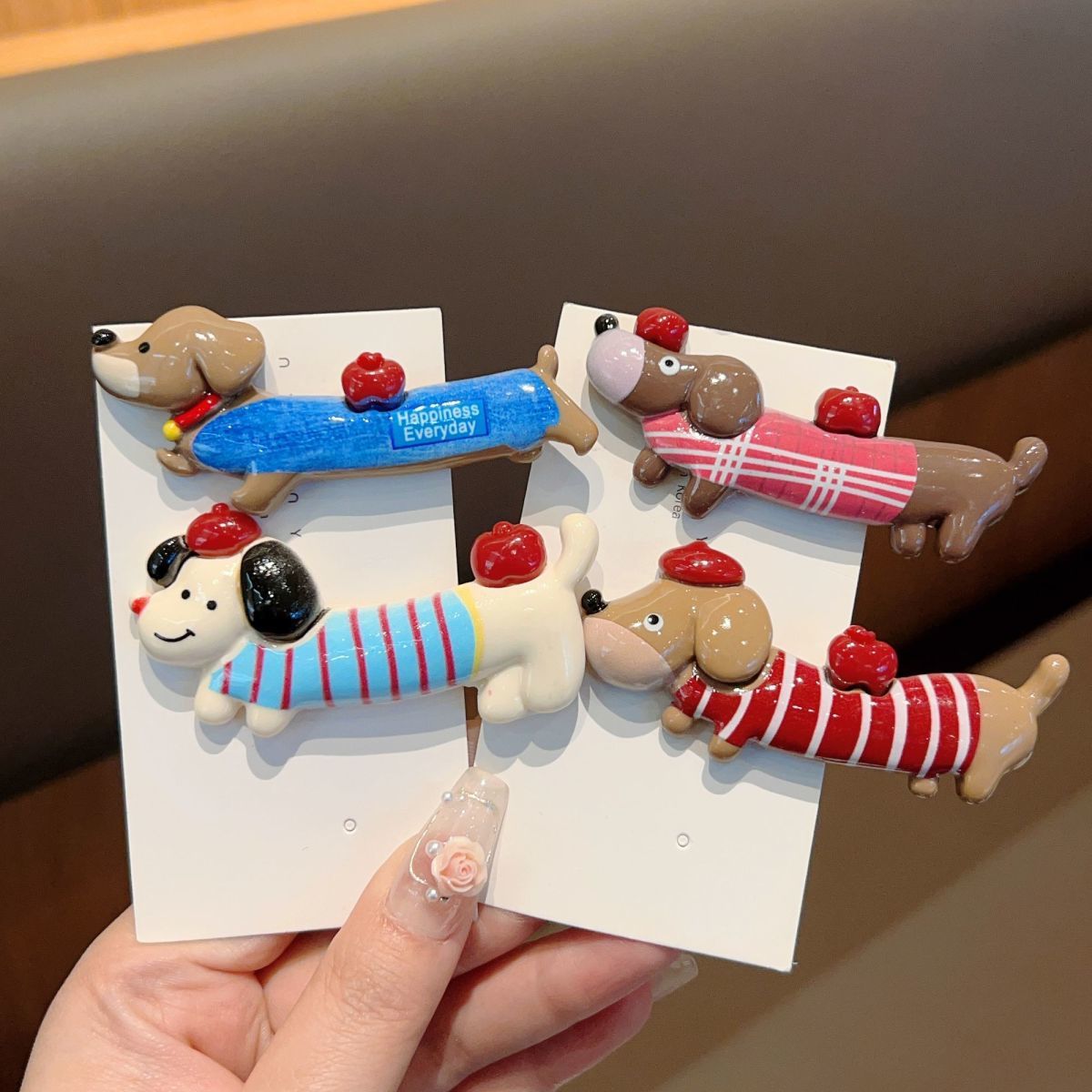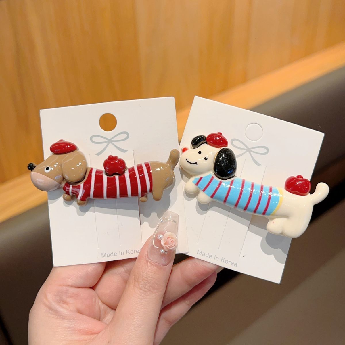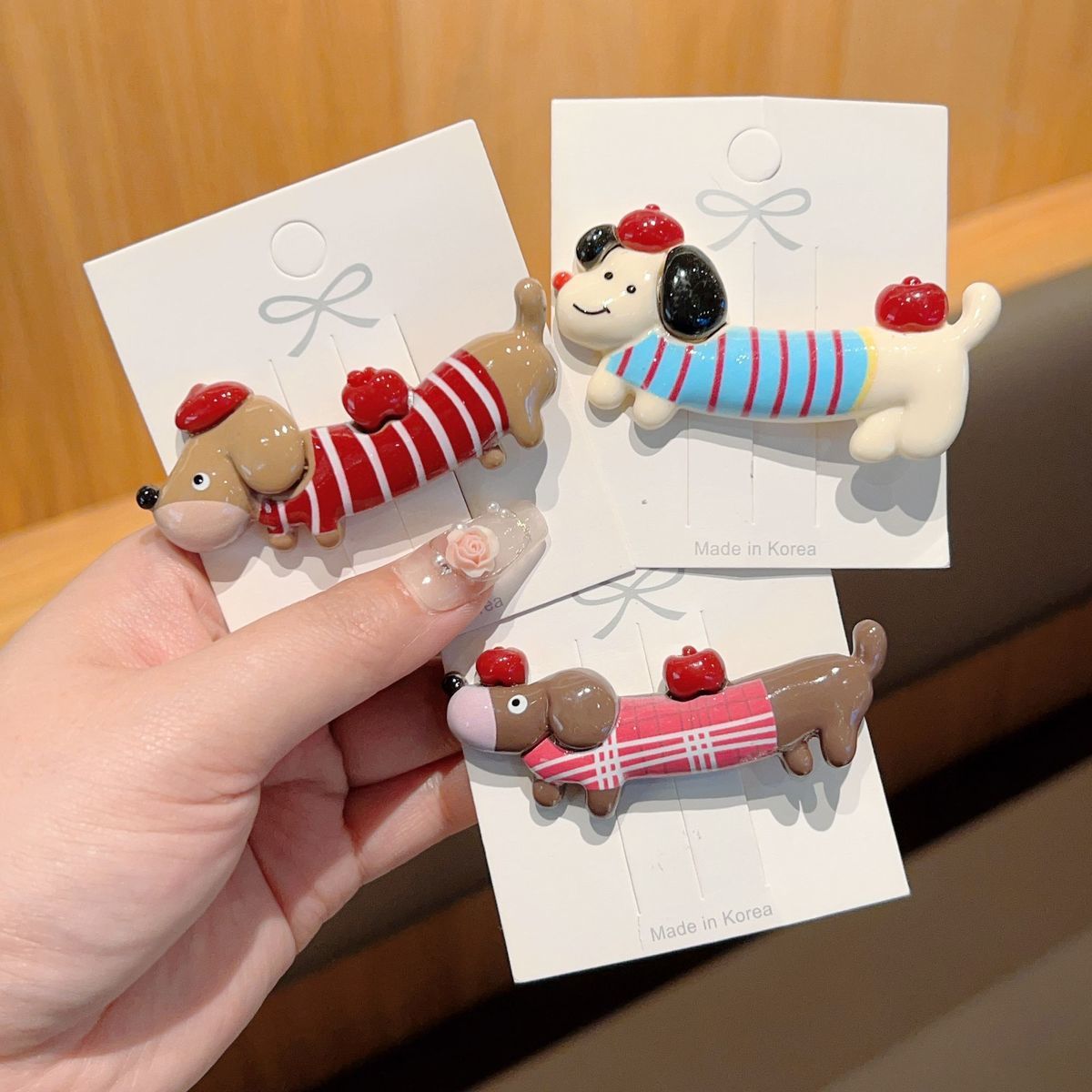 새로운 닥스훈트 강아지 머리핀 ins 소녀 귀여운 사이드 덕빌 머리핀 앞머리 만화 머리 장식