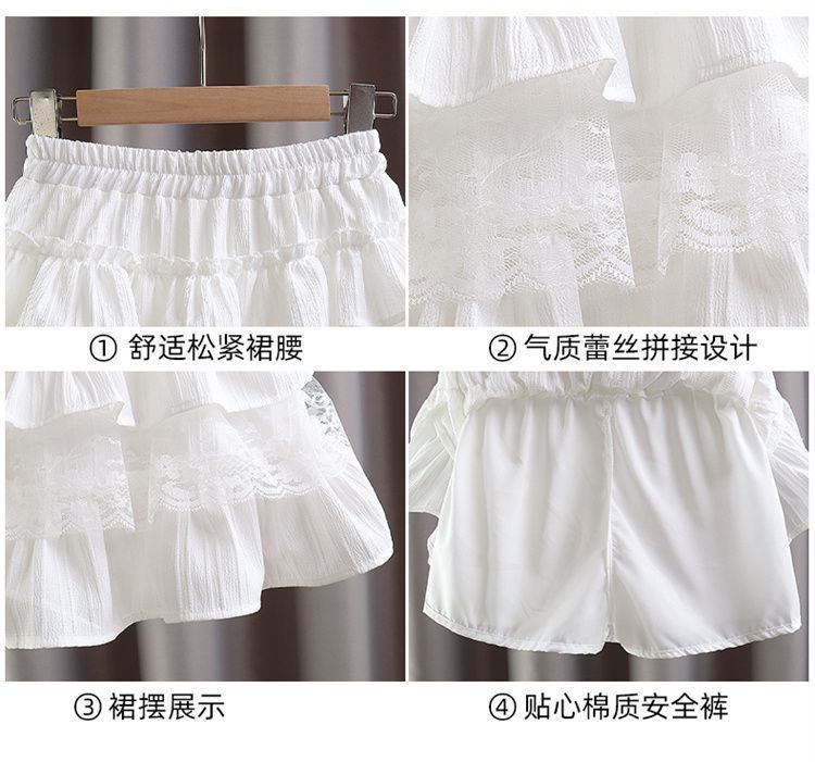 여자 스커트 2025 여름 새로운 스타일 케이크 스커트 안전 바지와 한국 달콤한 레이스 주름 스커트