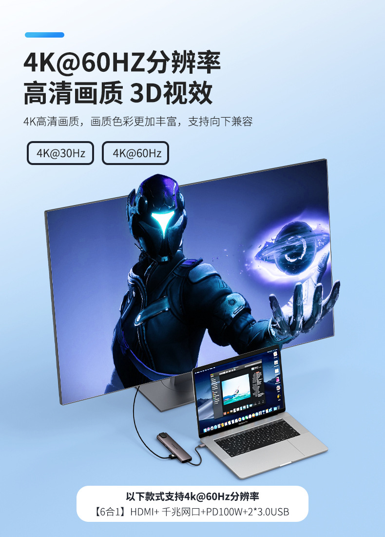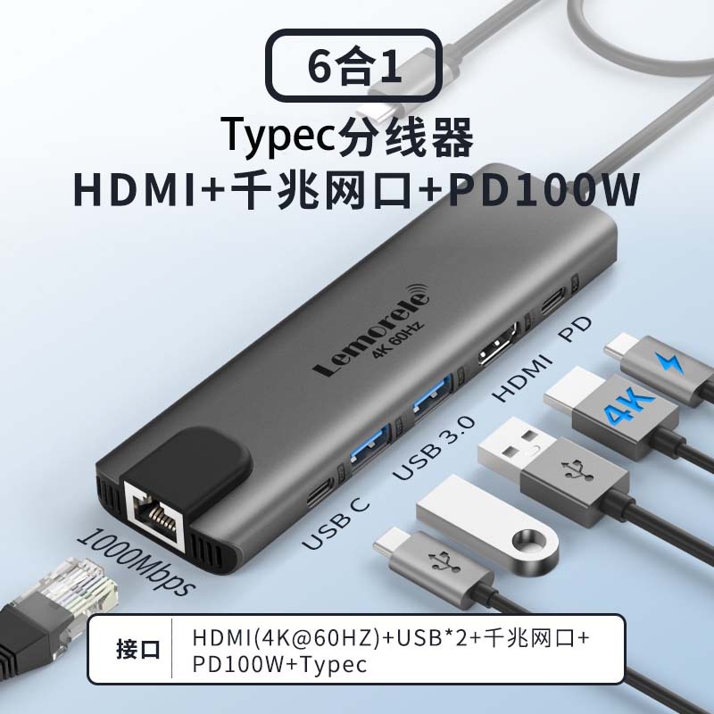 • 인기 모델 [6-in-1] HDMI4K@60HZ+PD100W+2*3.0USB+기가비트 네트워크 포트