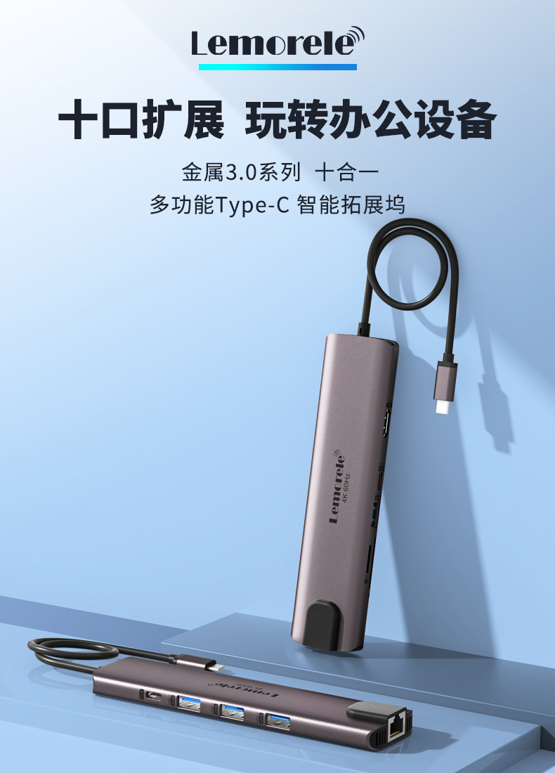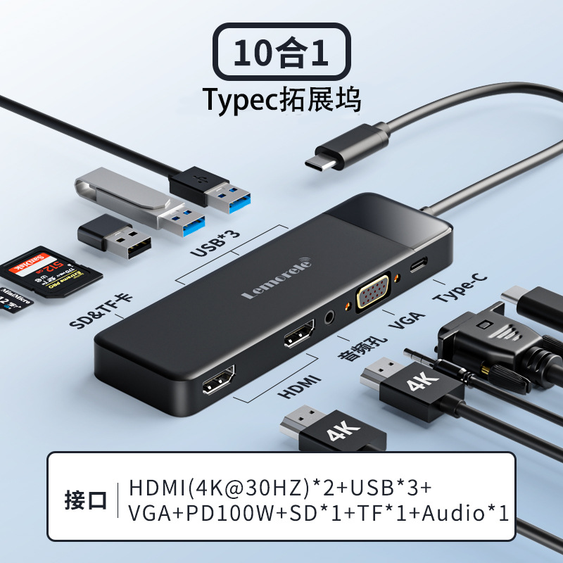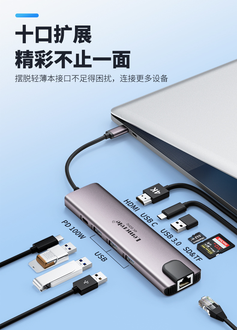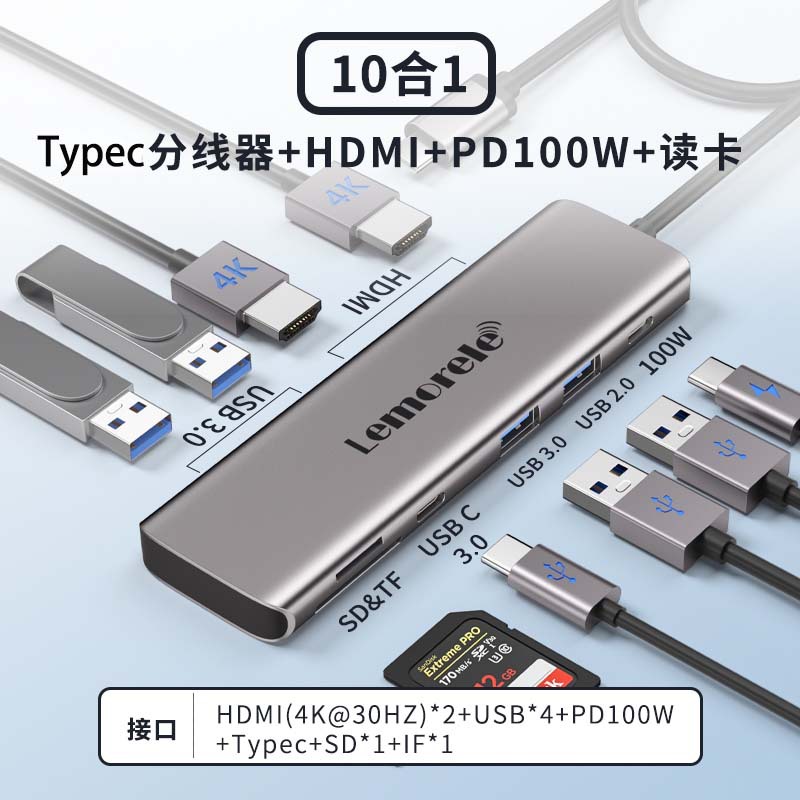 • 【10 in 1ABS】HDMI4K@30HZ+PD100W+기가비트 네트워크 포트+2*3.0USB+2*USB+카드 리더기