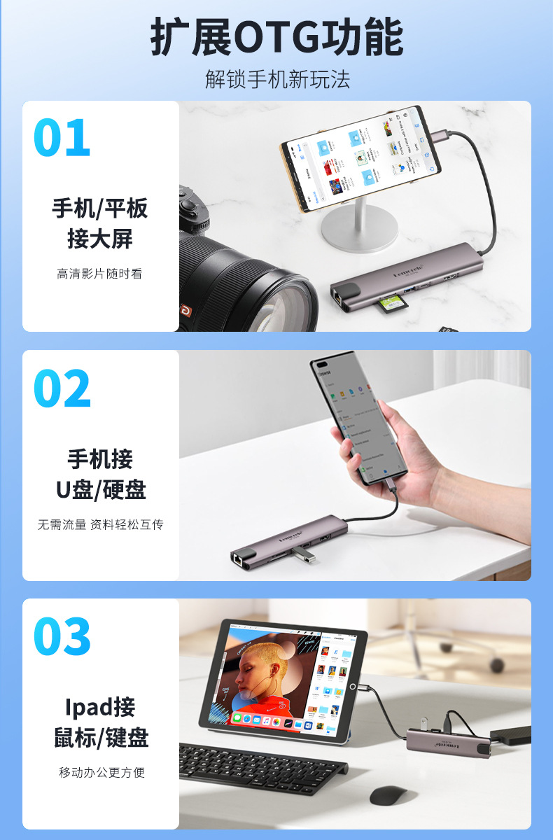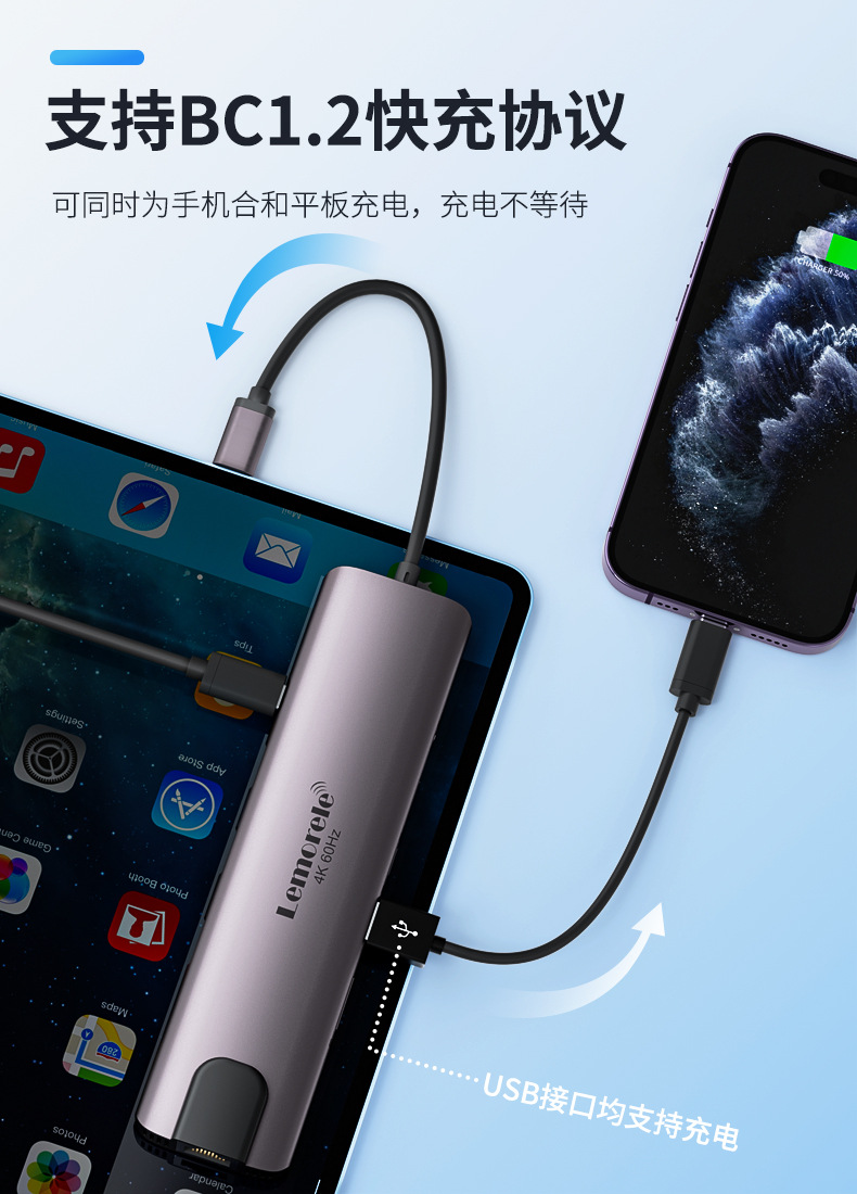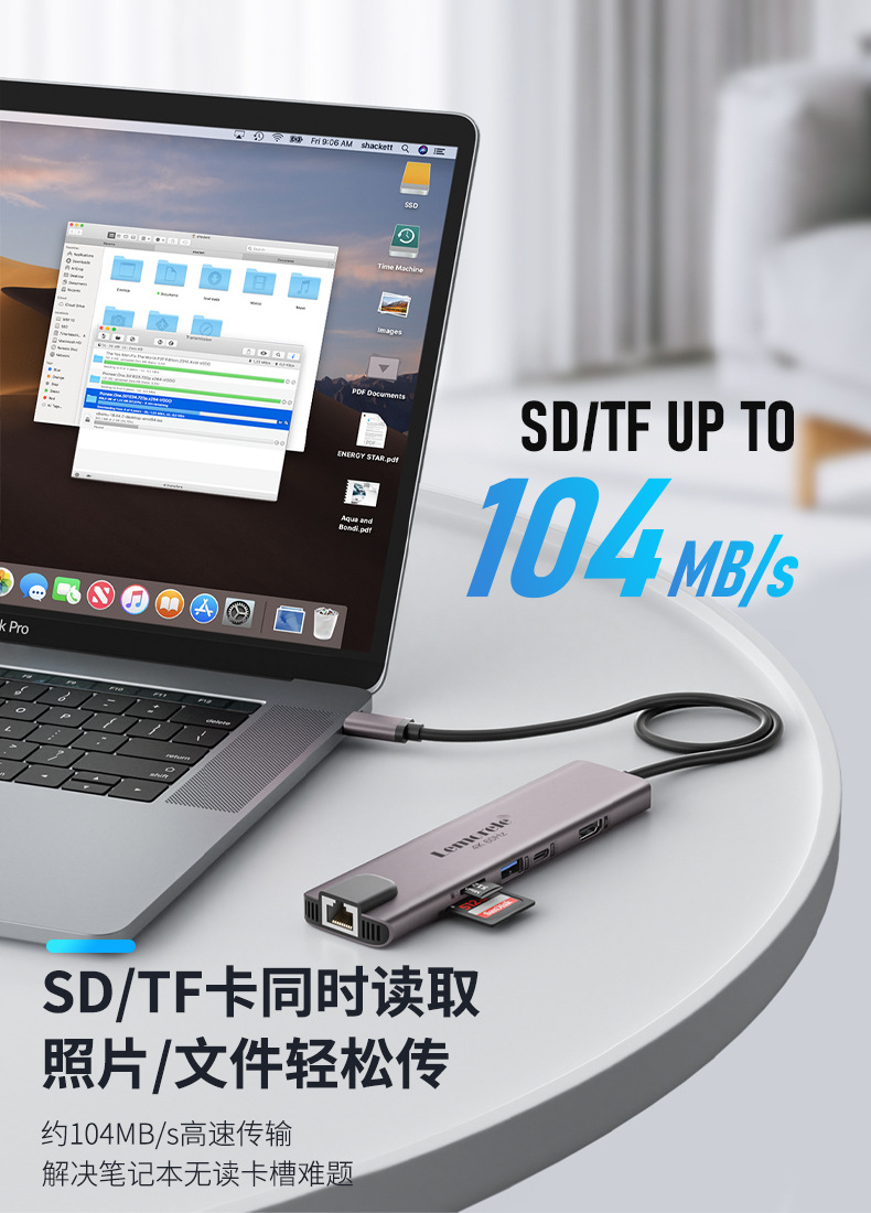 • 【9 in 1】HDMI4K@30HZ+기가비트 네트워크 포트+PD100W+3*USB+Typec+카드 리더기
