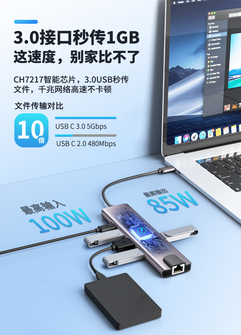 • 향상된 버전 [기가비트 이더넷 포트에 대한 Type-C3.0 인터페이스] 플러그 앤 플레이 드라이버가 필요 없음