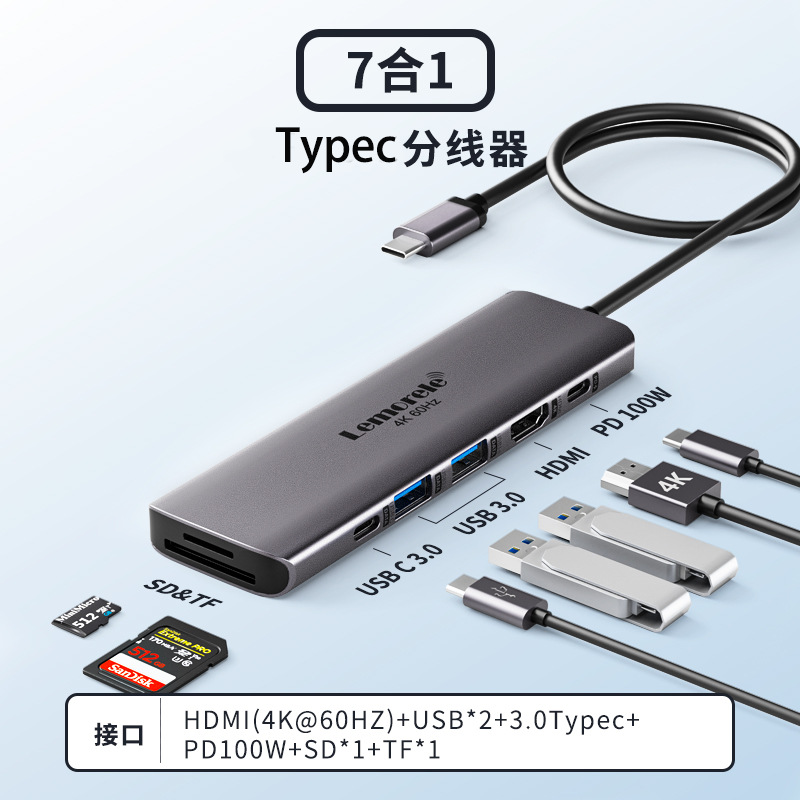 • 인기 모델 [7-in-1] HDMI4K@30HZ+PD100W+2*USB+카드 리더기+기가비트 네트워크 포트