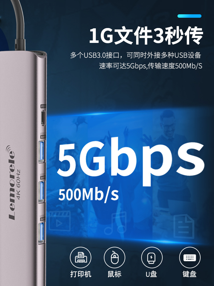 • 【5인1】HDMI4K@30HZ+PD100W+3.0USB+2*USB
