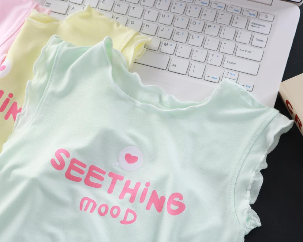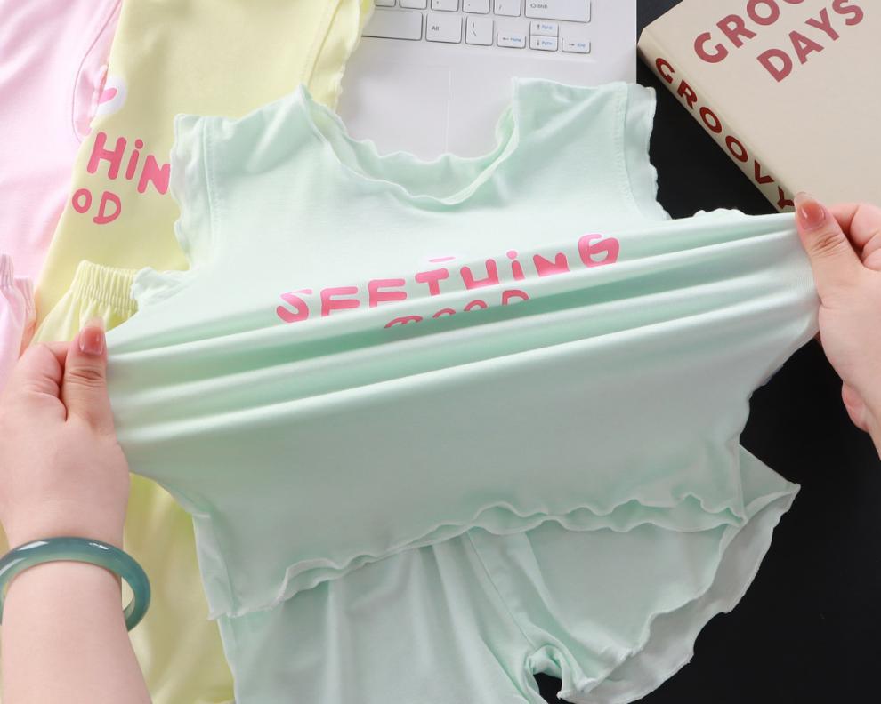 새로운 모달 여아 정장, 아동 잠옷, 가정복, 유아 여름 얇은 에어컨 의류, 투피스 트렌디 세트
