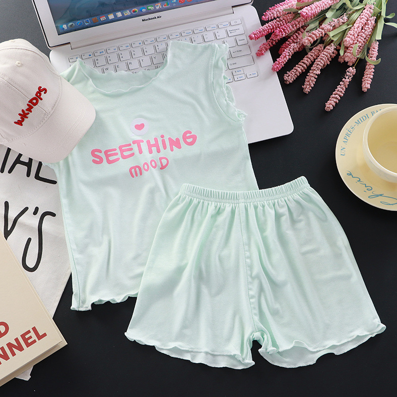 새로운 모달 여아 정장, 아동 잠옷, 가정복, 유아 여름 얇은 에어컨 의류, 투피스 트렌디 세트스토어 가기