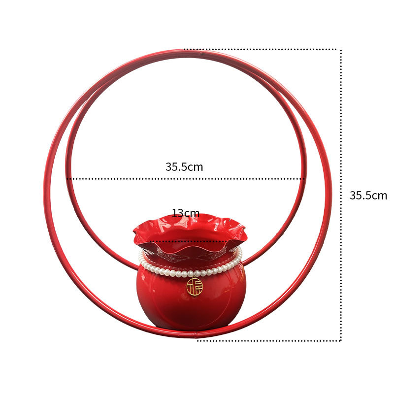 철제 화분대 중국식 선(禪) 스타일 가정 거실용 철제 중국풍 빨간색 화분 선물 장식용 중국식 꽃바구니