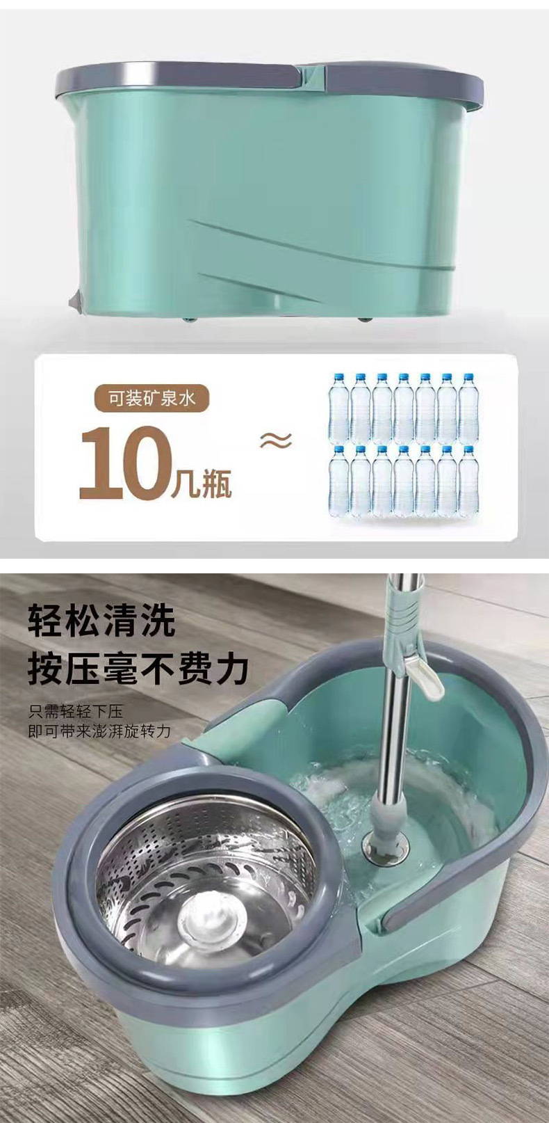 • 걸레통 + 일반 막대 + 플라스틱 바구니 + 플라스틱 판 + 걸레 헤드 1개