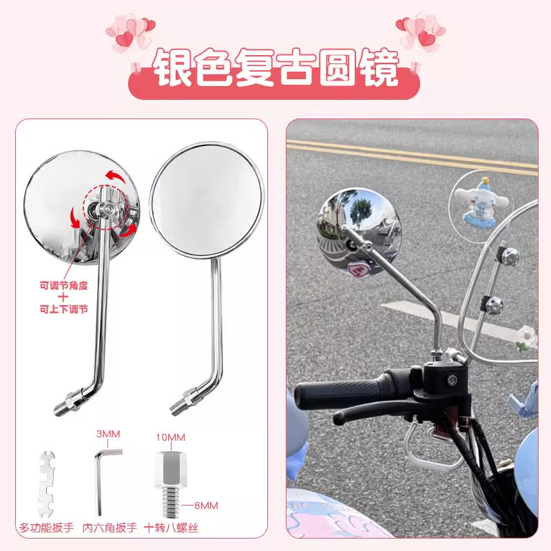 • 레트로 전기도금 백미러 + 8mm 변환 나사