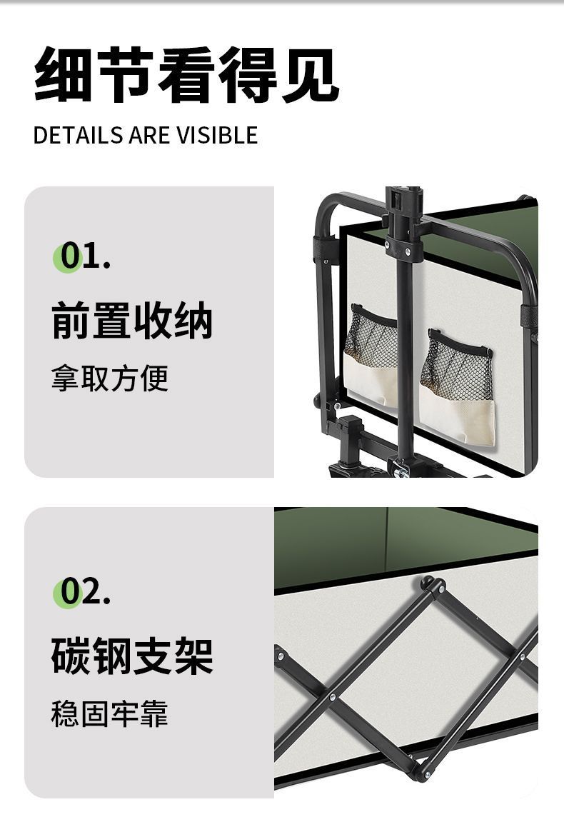 • 캠프카 + 테이블 + 리프팅 로드 - 뒤로 회전 가능 10inch 탱크 휠 카키/이중 브레이크