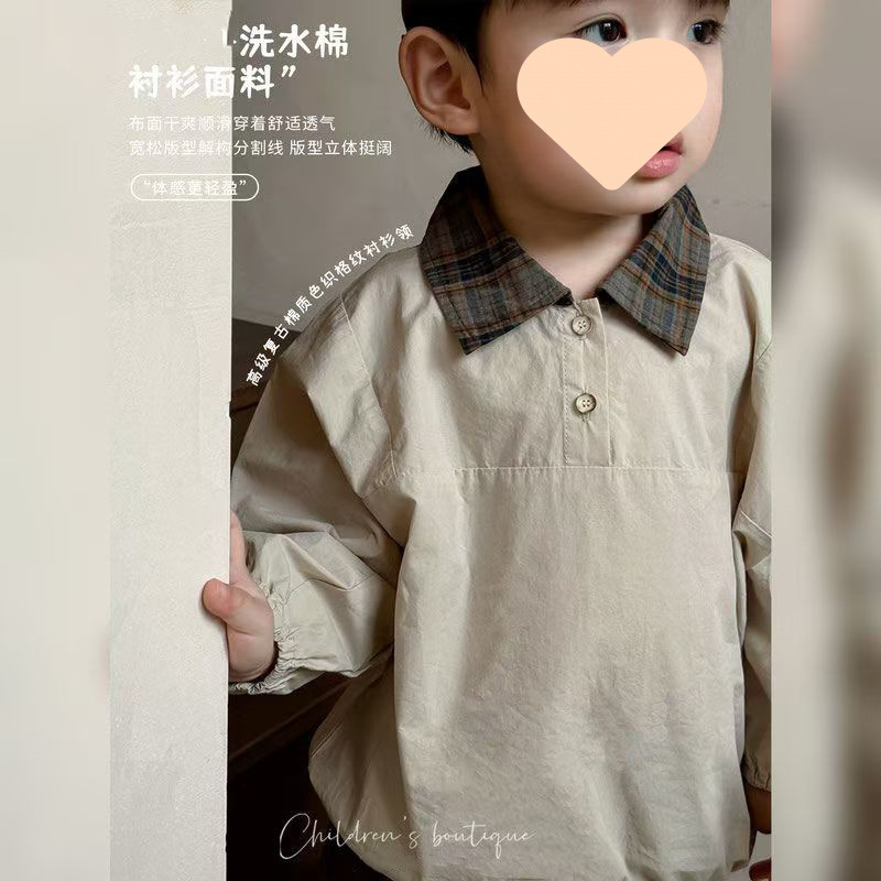 베이비 문학 캐주얼 셔츠 봄, 가을 2025 새로운 어린이 가을 긴 셔츠 어린이 면화 탑 통기성스토어 가기