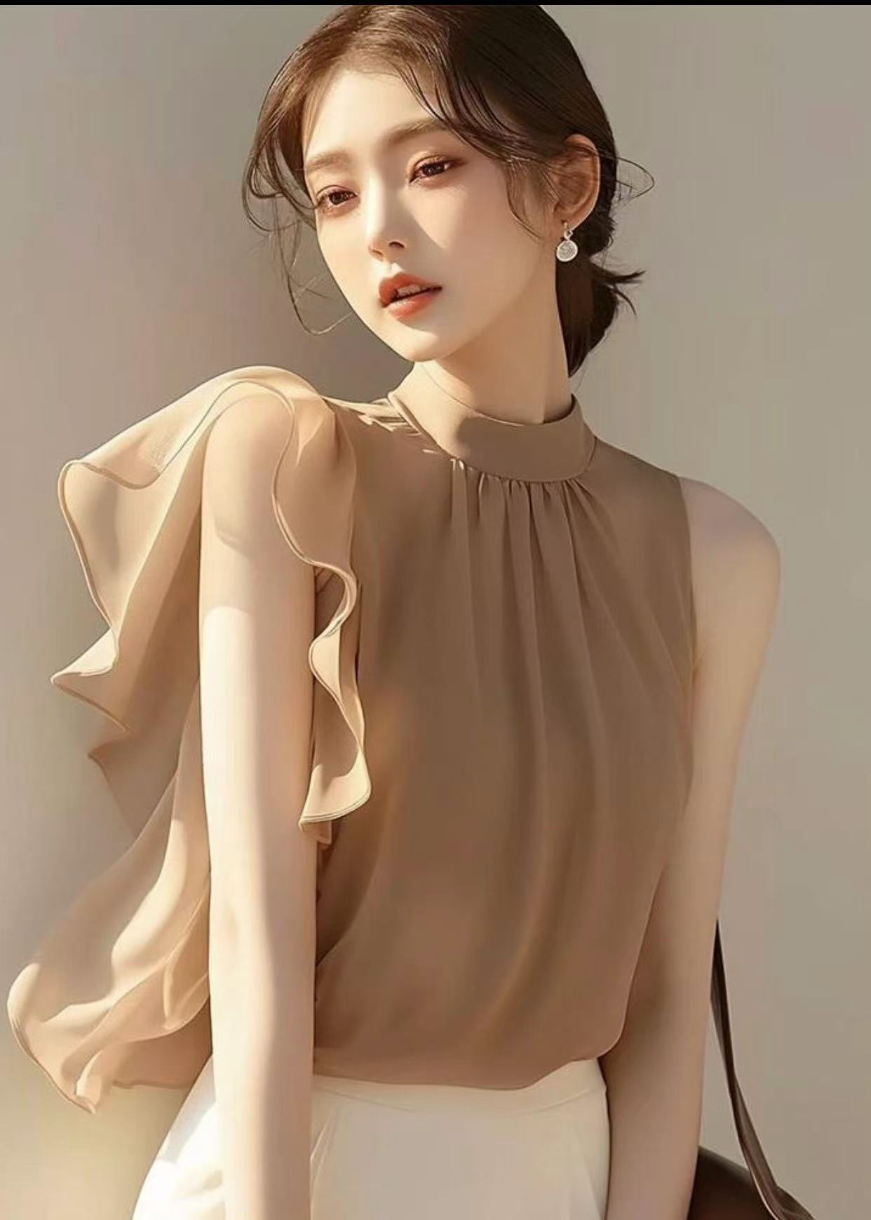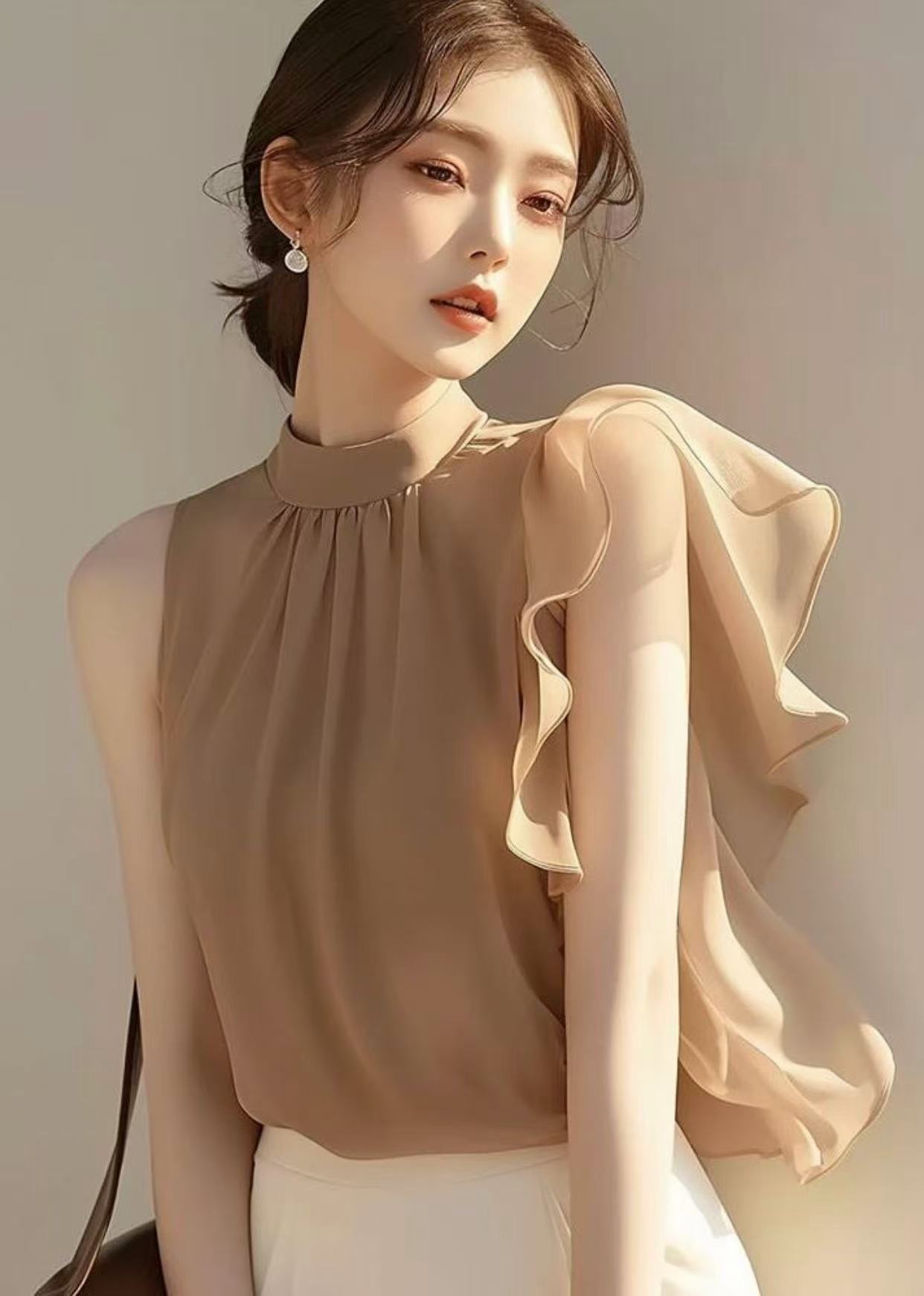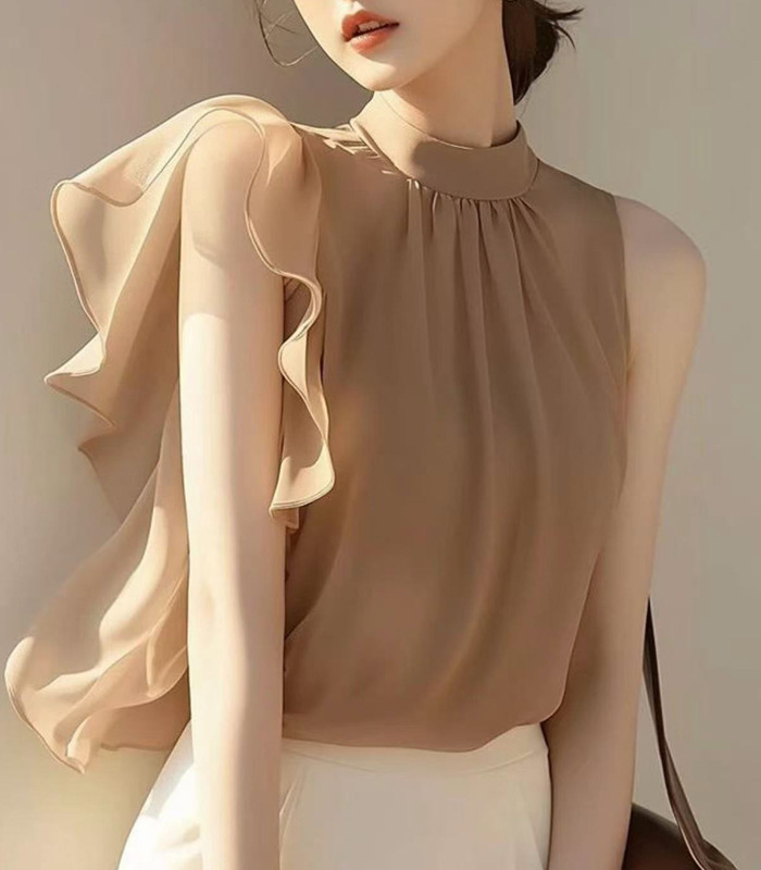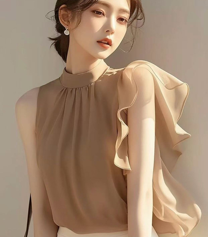 세련되고 슬림하며 독특하고 시크하며 아름다운 셔츠, 올해 여름 유행하는 프렌치 하이엔드 기질 러플 쉬폰 셔츠
