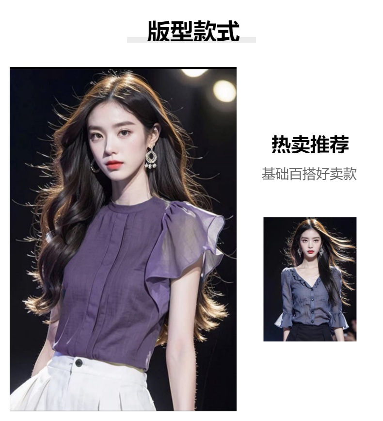 세련되고 슬림하며 독특하고 시크하며 아름다운 셔츠, 올해 여름 유행하는 프렌치 하이엔드 기질 러플 쉬폰 셔츠스토어 가기