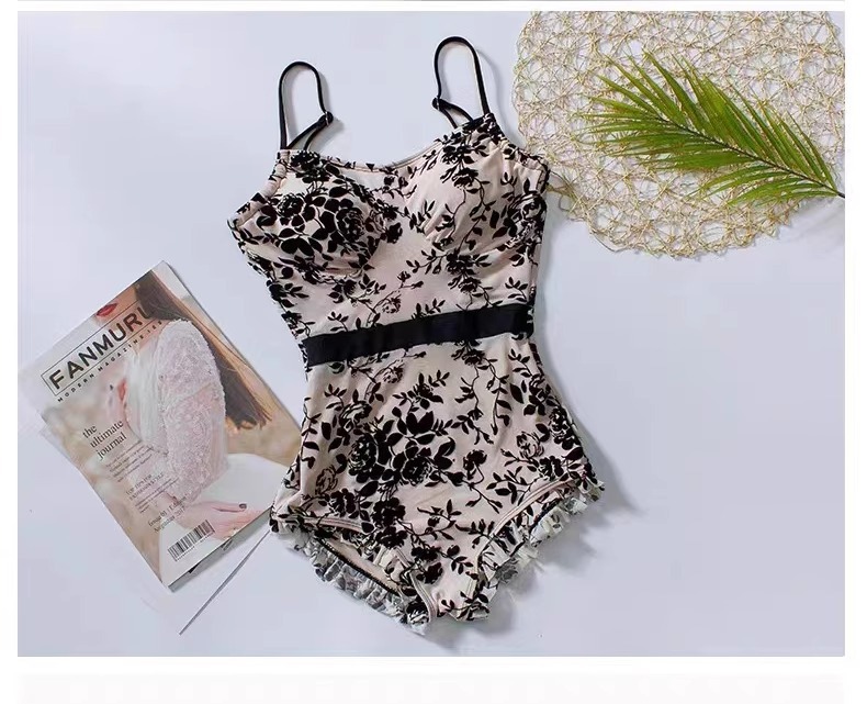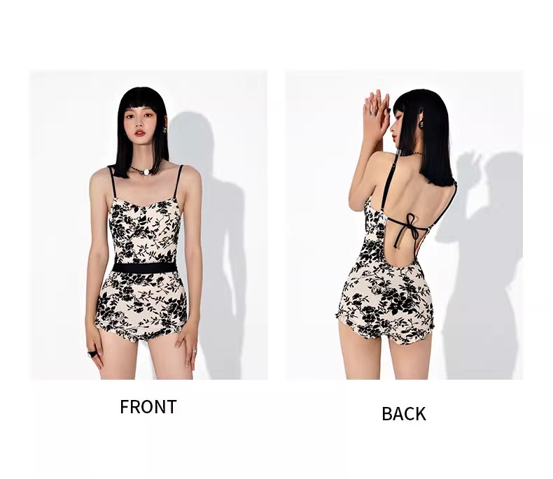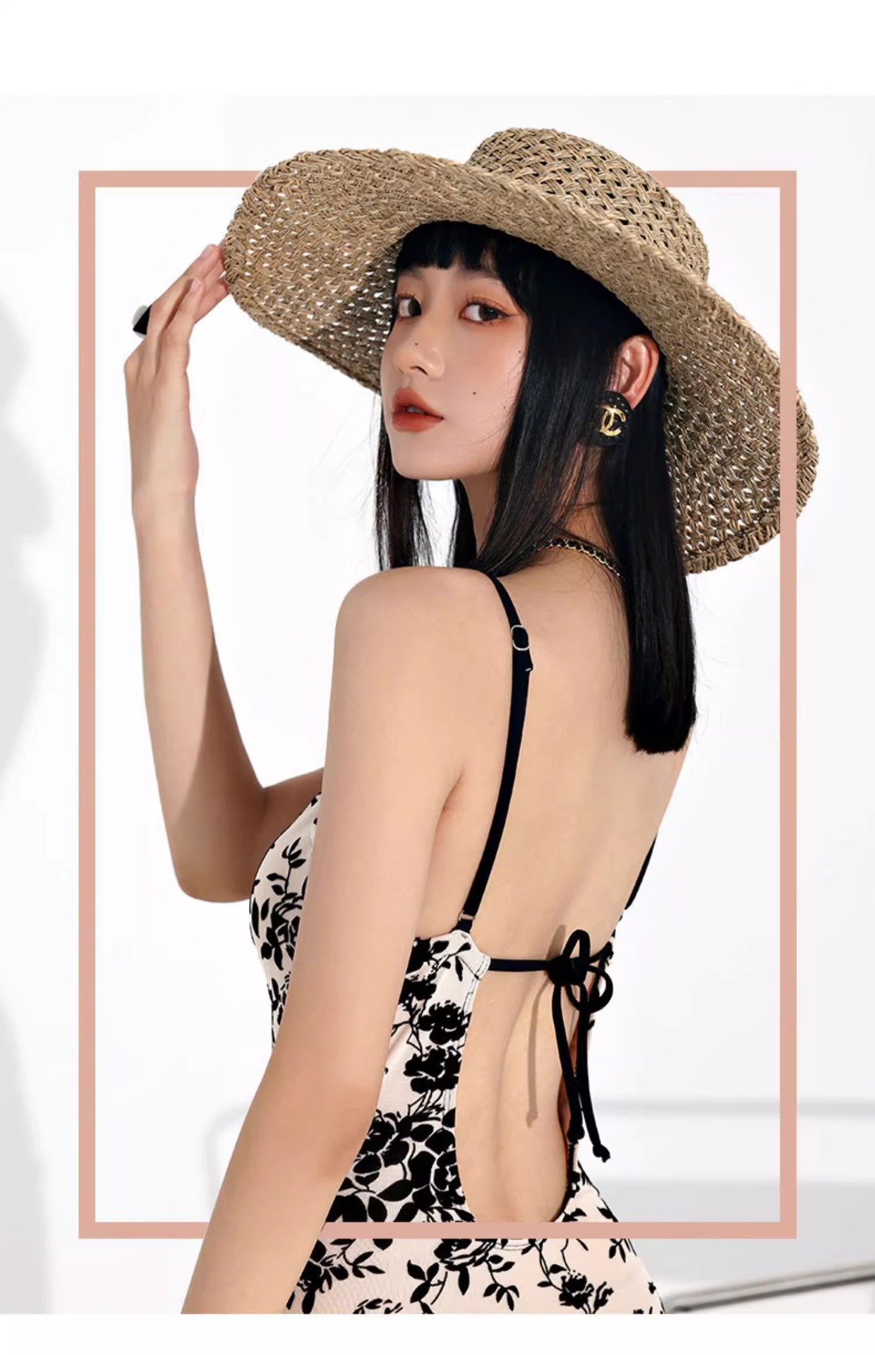 Funhancouple 복고풍 잉크 스타일 섹시한 등이없는 원피스 수영복 보수적 인 배 커버 온천 휴가 수영복 여성용