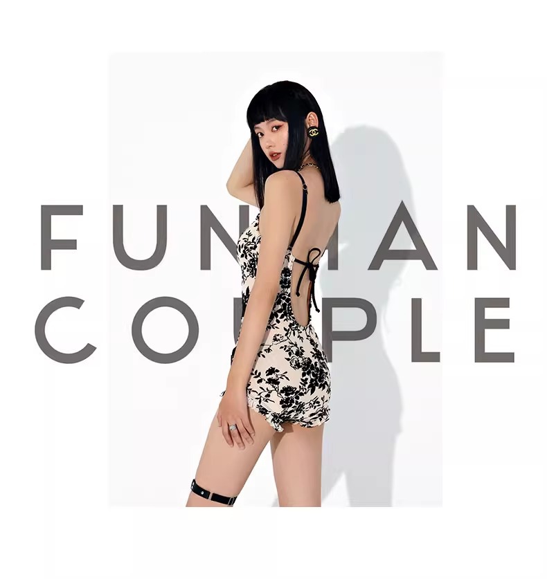 Funhancouple 복고풍 잉크 스타일 섹시한 등이없는 원피스 수영복 보수적 인 배 커버 온천 휴가 수영복 여성용스토어 가기