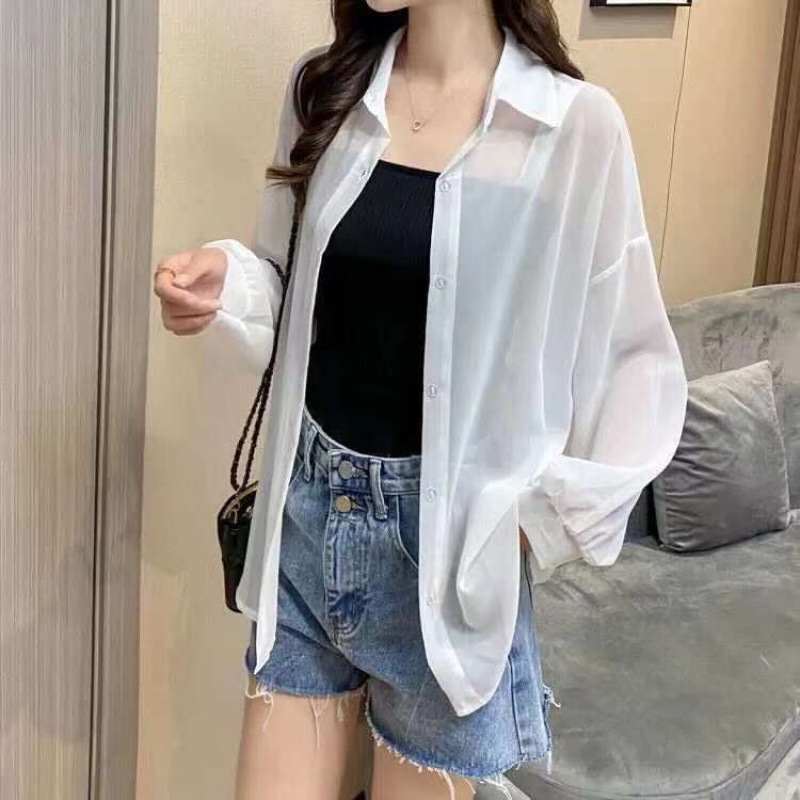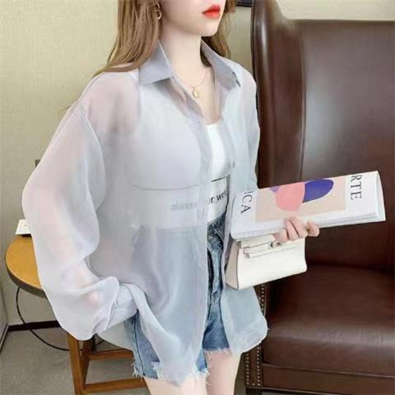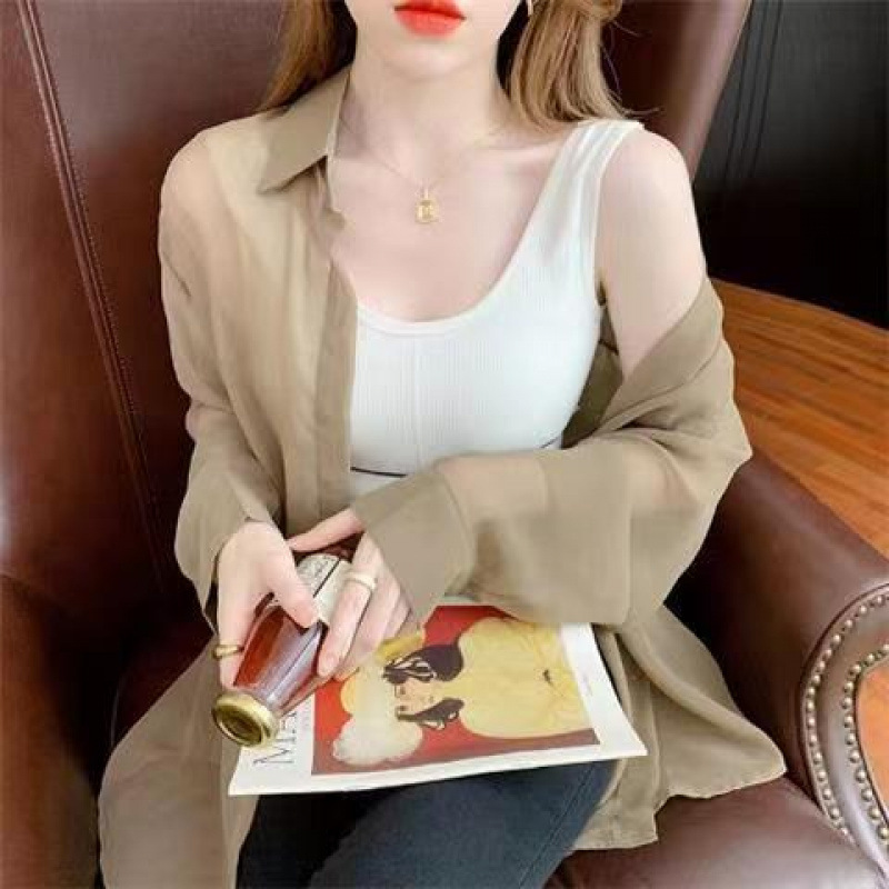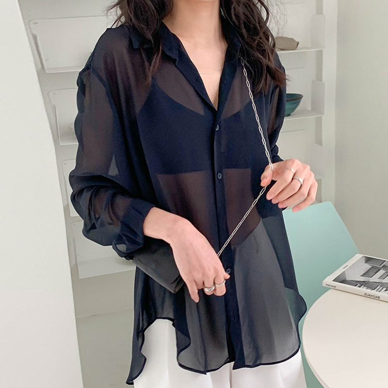 여름용 얇은 여성용 셔츠, 서스펜더 스커트, 블라우스, 쉬폰 탑, 시스루 요정 가디건스토어 가기