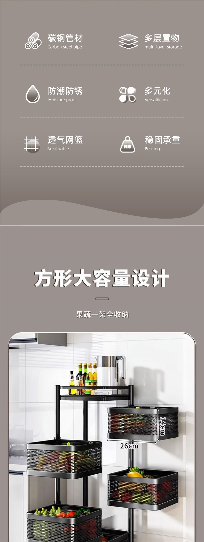 주방 회전 선반 가정용 바닥 스탠딩 거실 스낵 상자 장난감 과일 및 야채 바구니 다층 트롤리 보관함스토어 가기