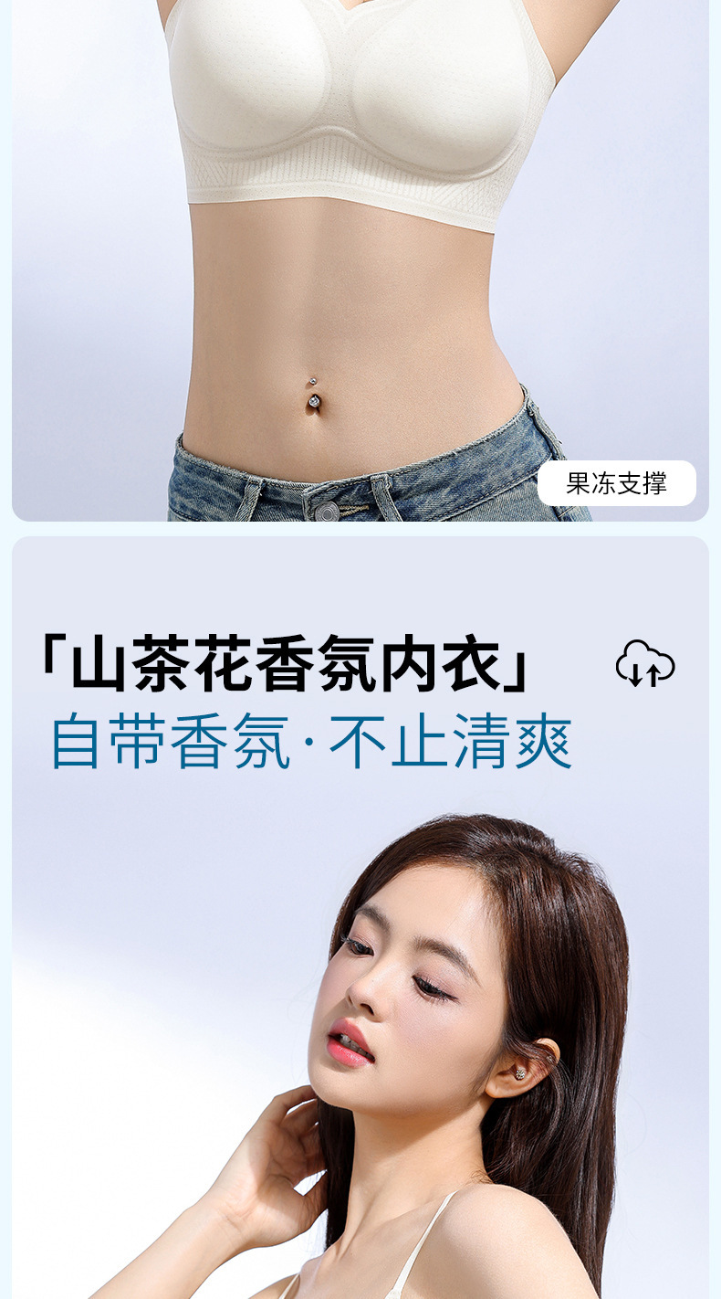 여름용 여성용 10A 클래스 동백 향기 심리스 속옷, 가볍고 얇은 젤리 스트립, 부드러운 지지대, 와이어 프리 브라 조끼스토어 가기