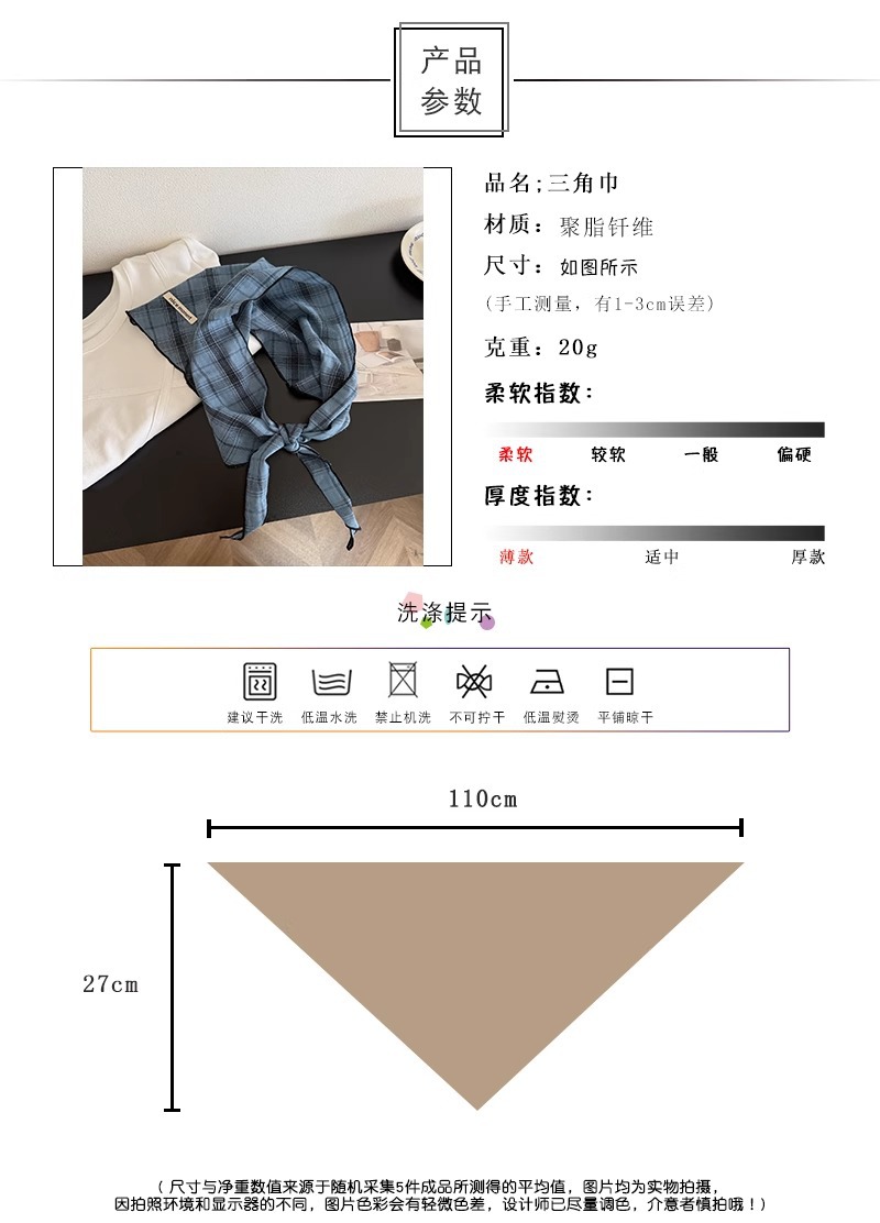 니치 스타일 한국 문학 격자 무늬 라인 삼각 스카프 여성 봄 여름 다용도 얇은 액세서리 실크 스카프 터번스토어 가기