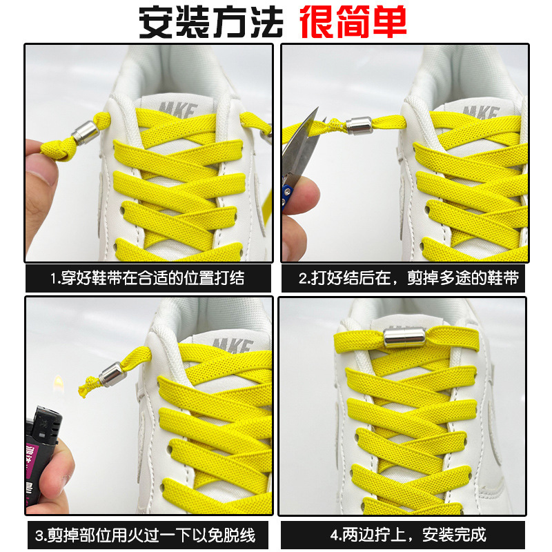 어린이를 위한 끈이 없는 게으른 신발끈 버클, 남성과 여성을 위한 탄성 폭이 넓어진 탄성 플랫 신발끈 로프, 프레스 고정 도구