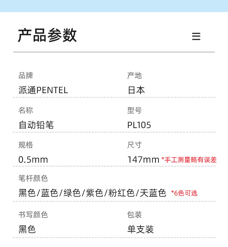 펜텔 0.5mm 프레스 샤프펜슬 학생 시험 그림 샤프펜슬 PL105-AX스토어 가기