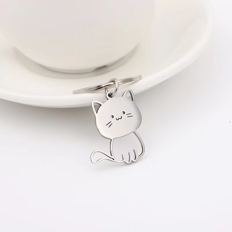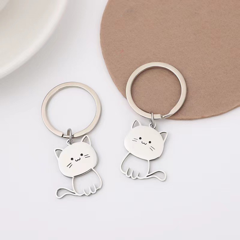 국경을 넘는 새로운 창조적 인 고양이 먹는 물고기 스테인레스 스틸 펜던트 귀여운 만화 고양이 펜던트 커플 키 체인 도매