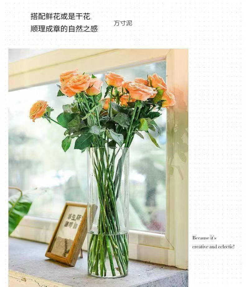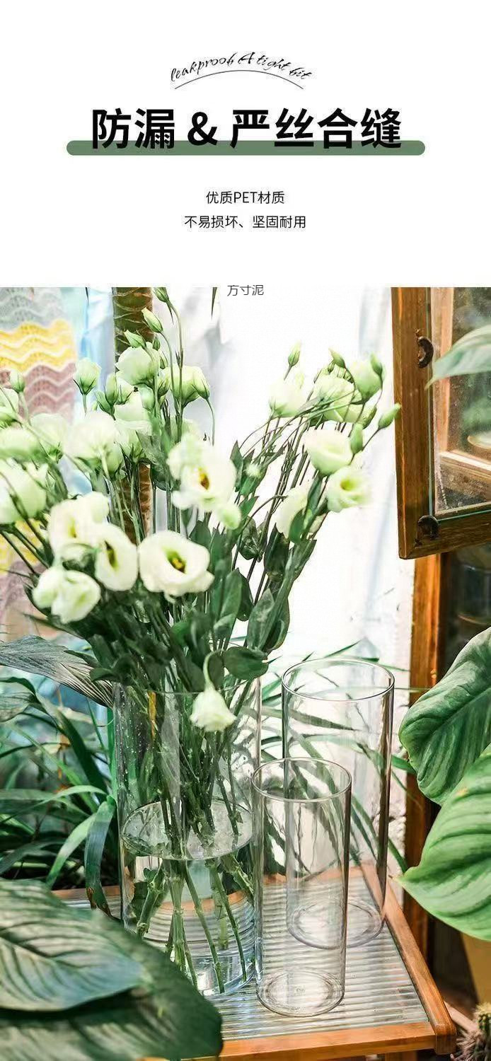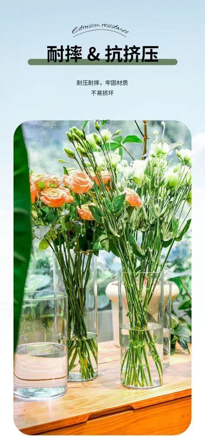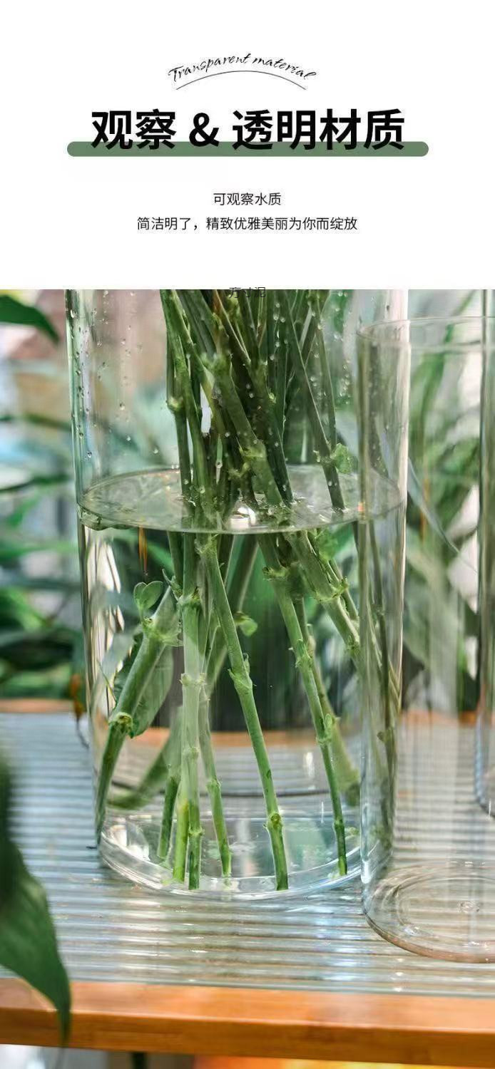 아크릴 낙하 방지 꽃병 장식품, 거실 꽃꽂이, 투명 물에 심은 부자 대나무, 직선형, 가벼운 럭셔리, 꽃통 도매스토어 가기