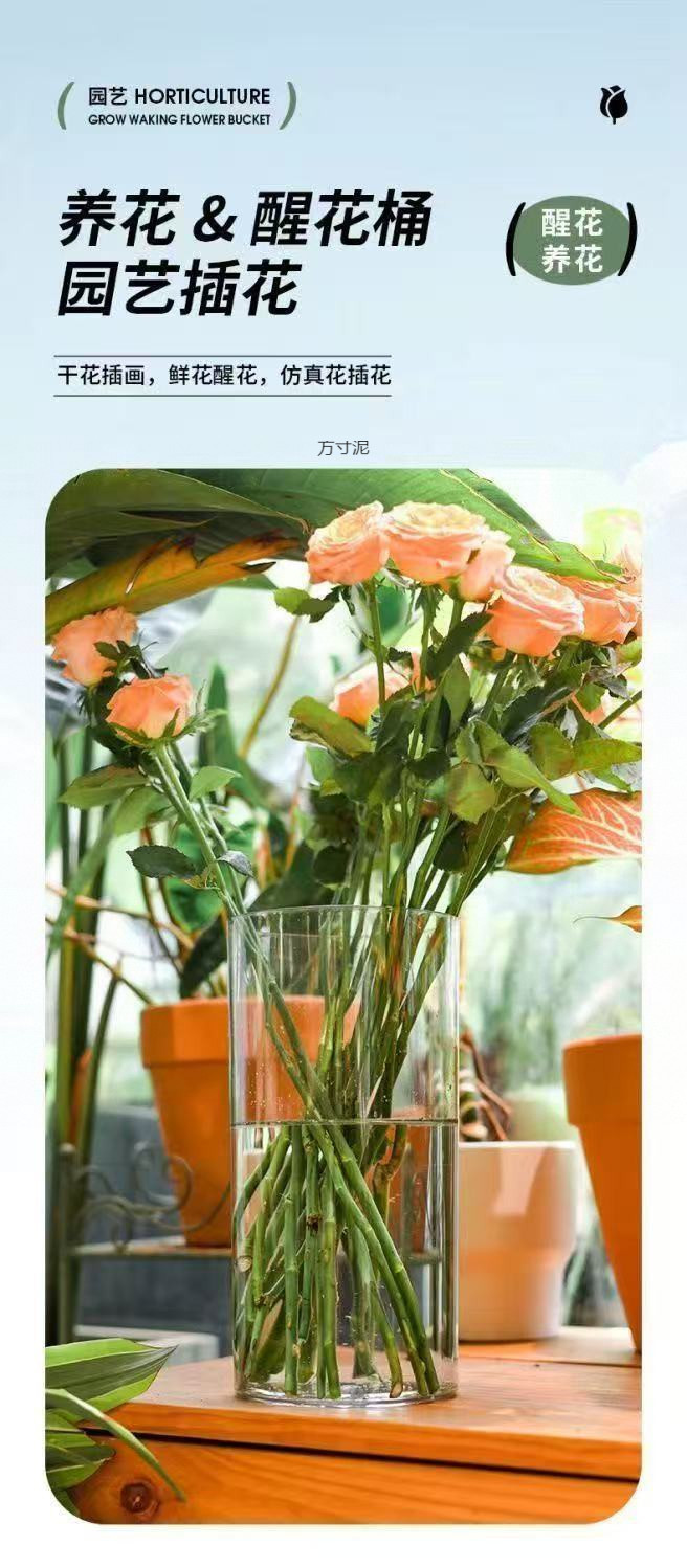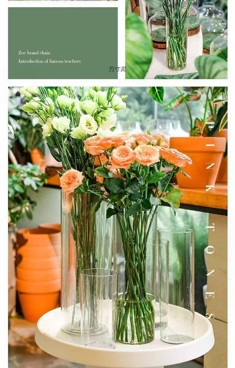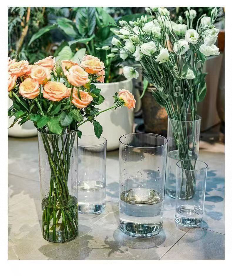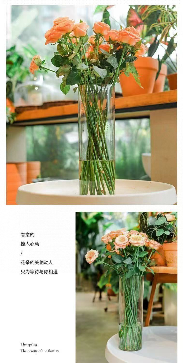 아크릴 낙하 방지 꽃병 장식품, 거실 꽃꽂이, 투명 물에 심은 부자 대나무, 직선형, 가벼운 럭셔리, 꽃통 도매스토어 가기
