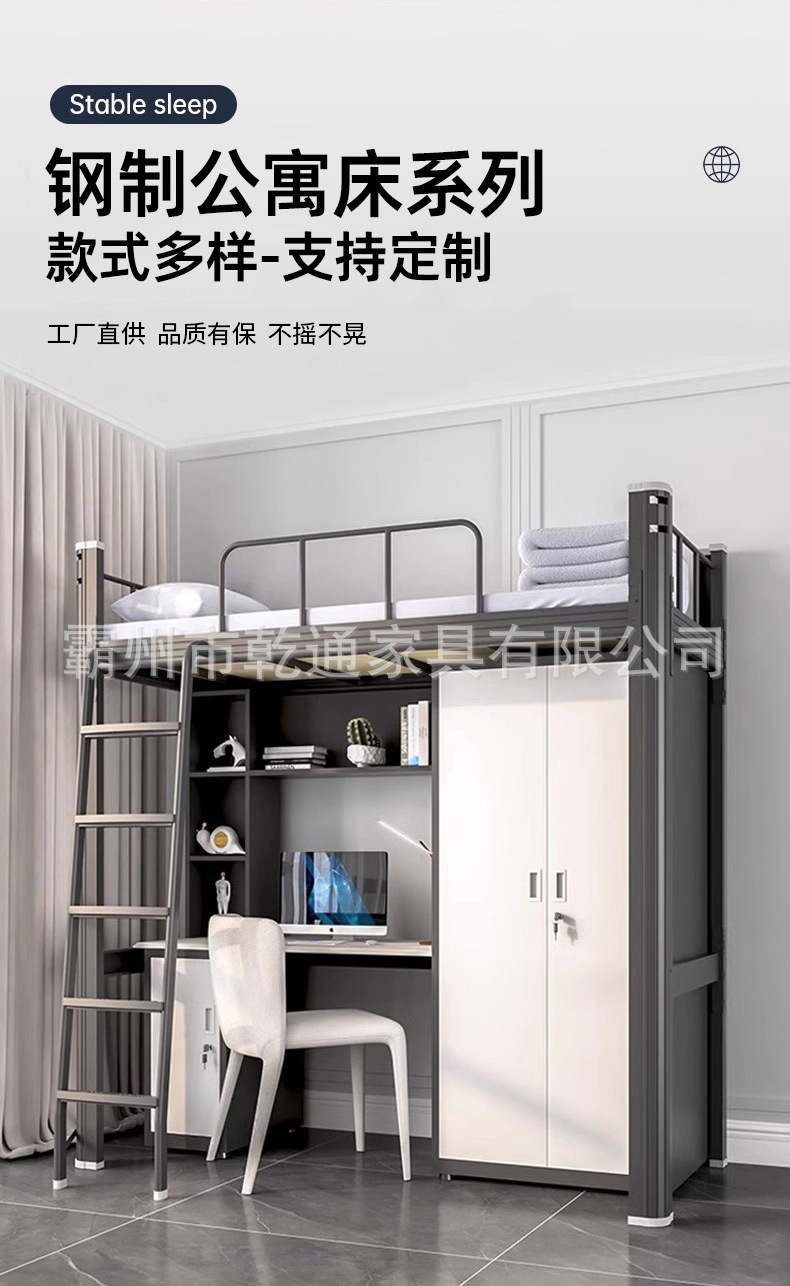 도매 학생 기숙사 이층 침대와 책상 일체형 철제 이층 침대 이층 침대와 책상 직원 아파트 침대스토어 가기