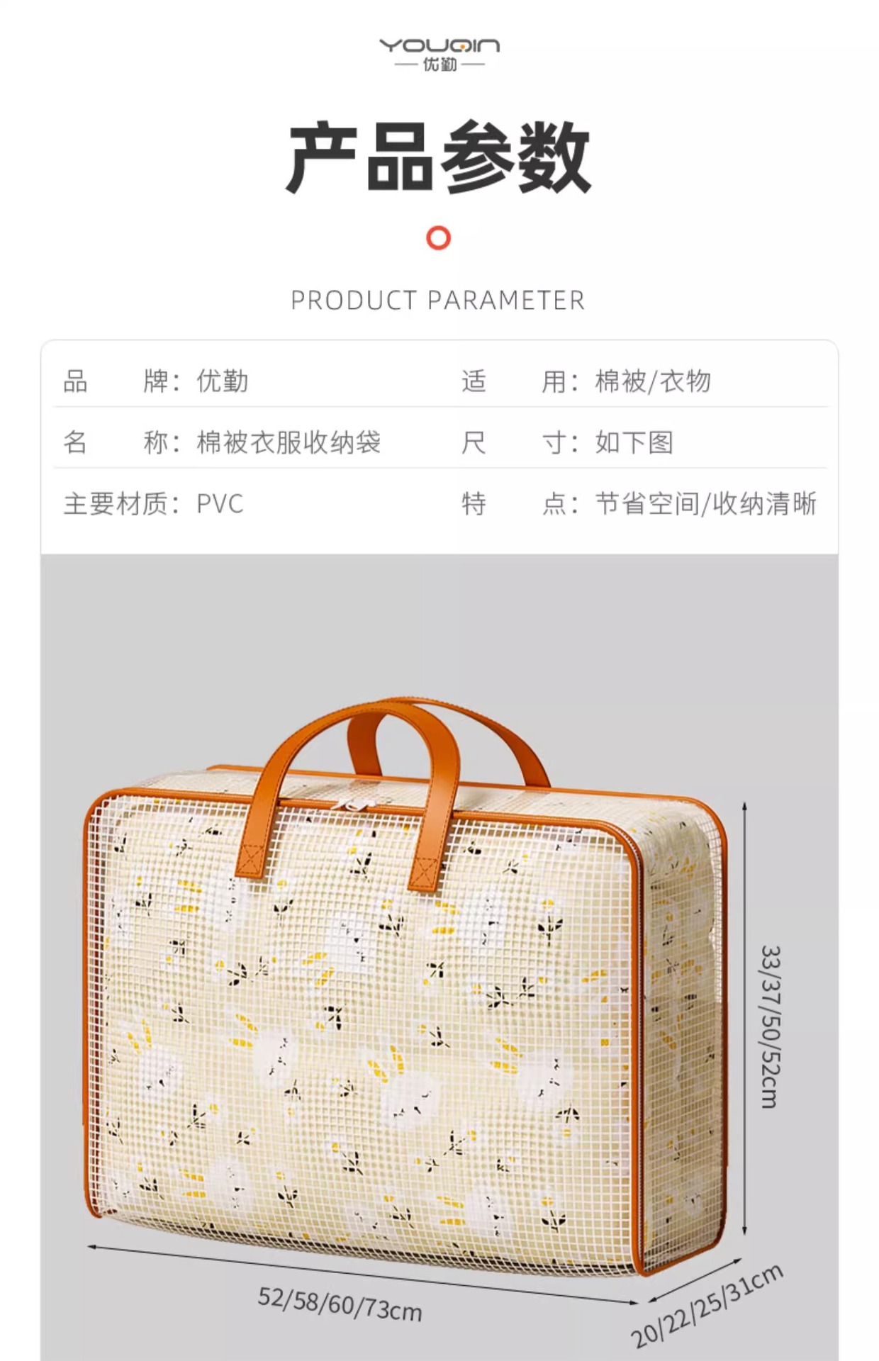 • 두꺼운 PVC 메쉬 대형 사이즈 - 60L (이불 2-3kg개/얇은 셔츠 50개 정도 수납 가능)
