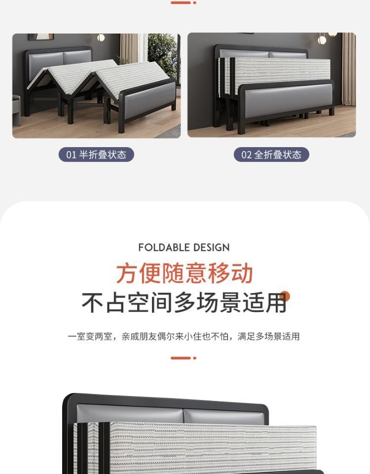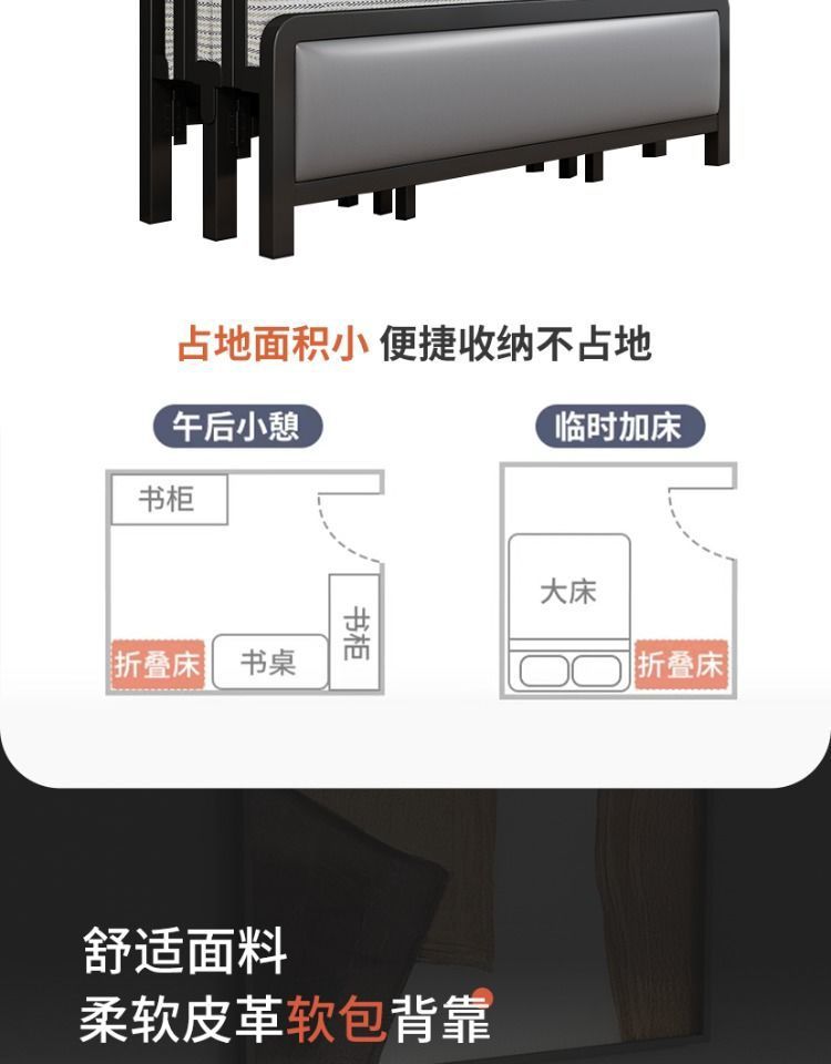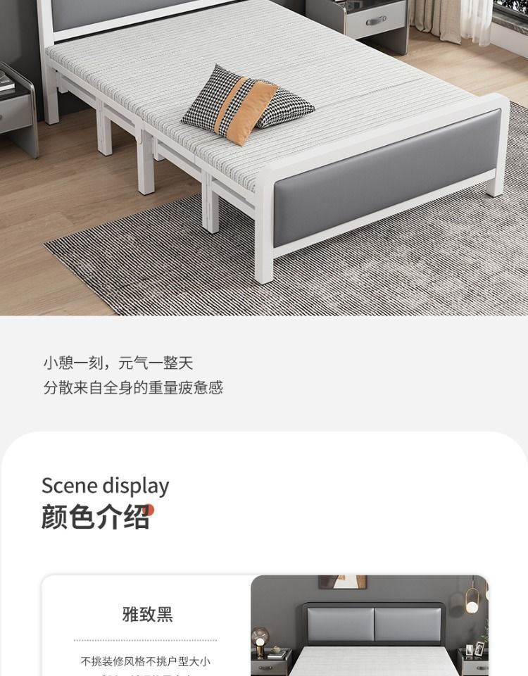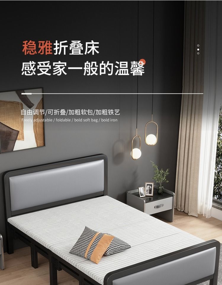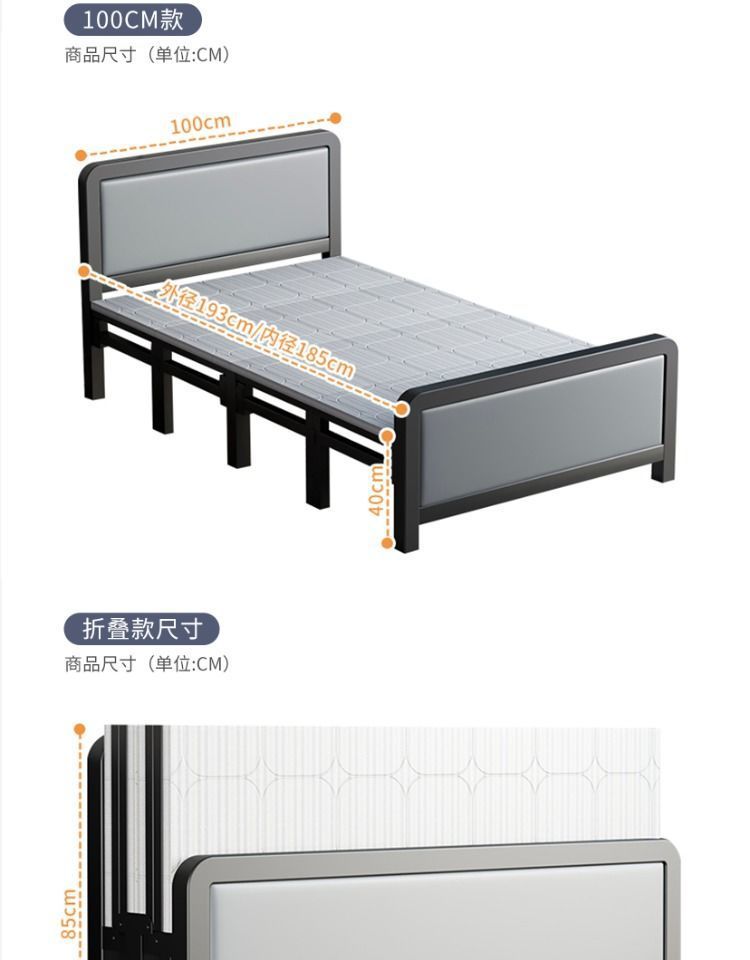 가정용 접이식 침대 철제 프레임 싱글 점심 휴식 임대 주택 휴대용 더블 침대 철제 프레임 간단한 하드 보드 침대 경제적 인스토어 가기