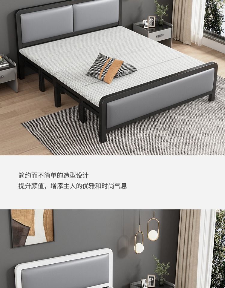 가정용 접이식 침대 철제 프레임 싱글 점심 휴식 임대 주택 휴대용 더블 침대 철제 프레임 간단한 하드 보드 침대 경제적 인