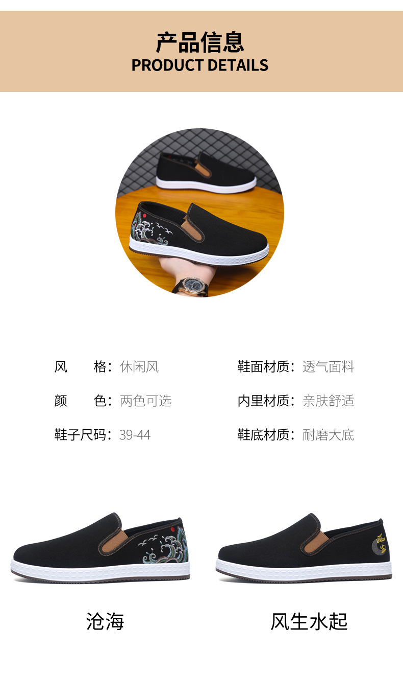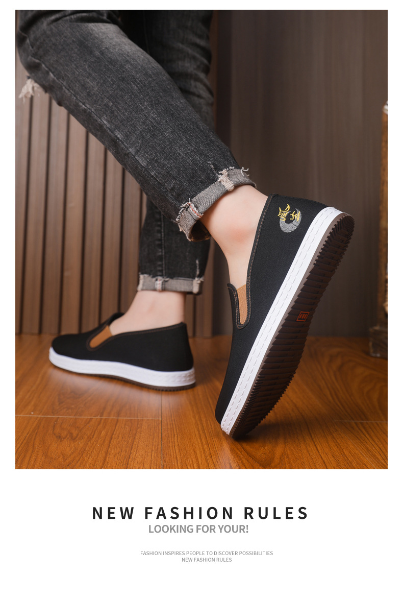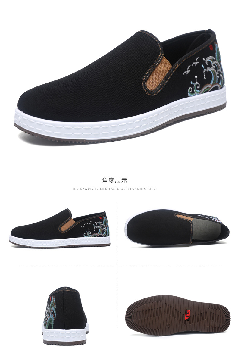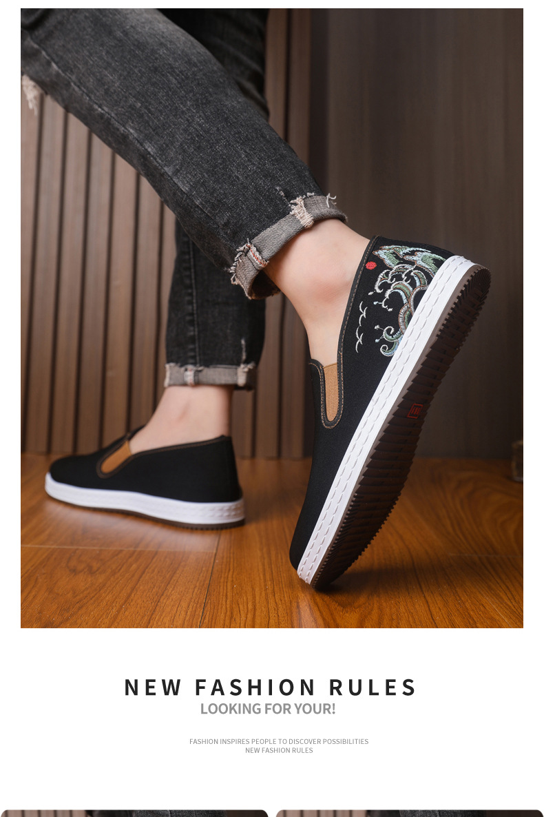 남성 신발 2025 새로운 스타일 중국 스타일 자수 캔버스 신발 민족 스타일 펌프 신발 슬립 온 캐주얼 올드 베이징 천 신발스토어 가기