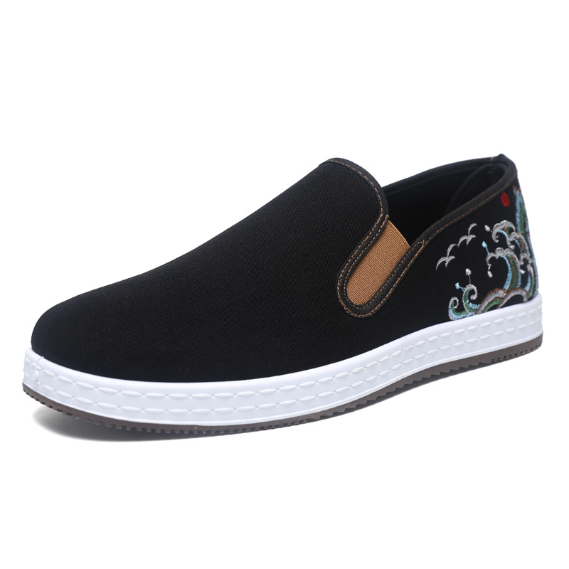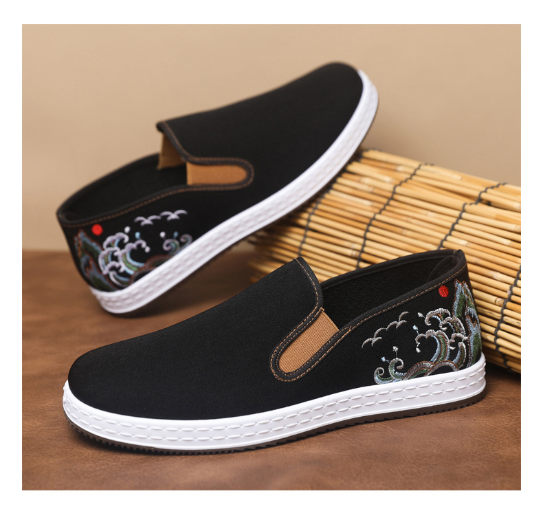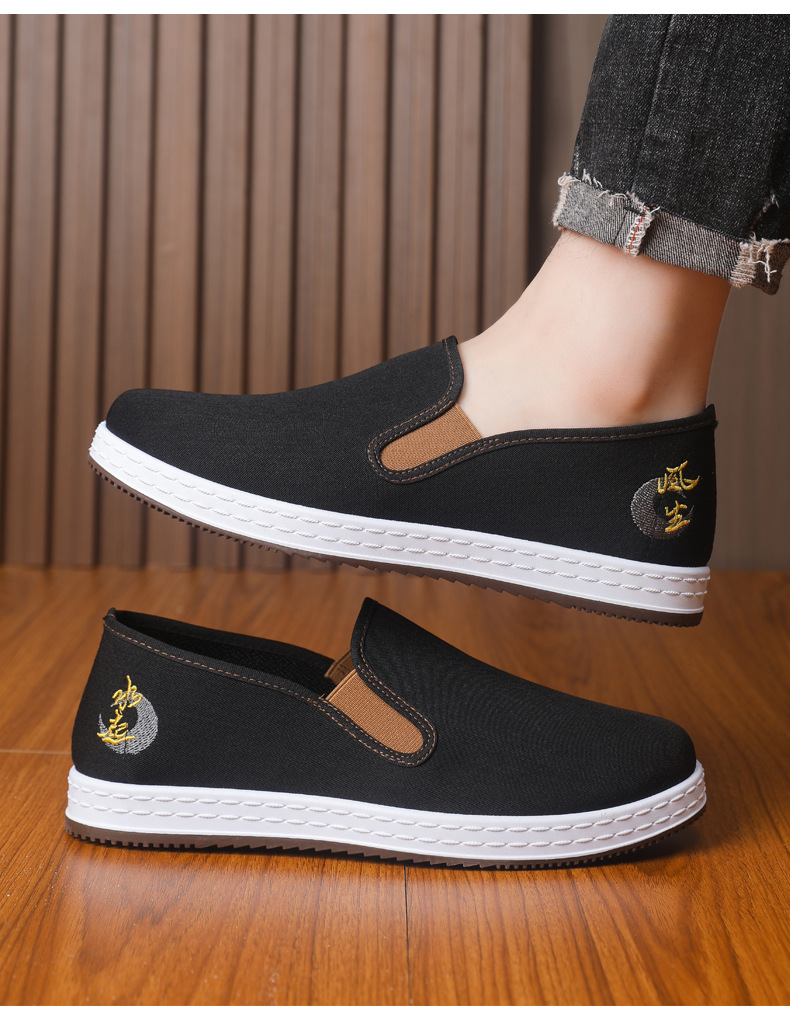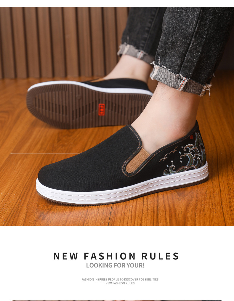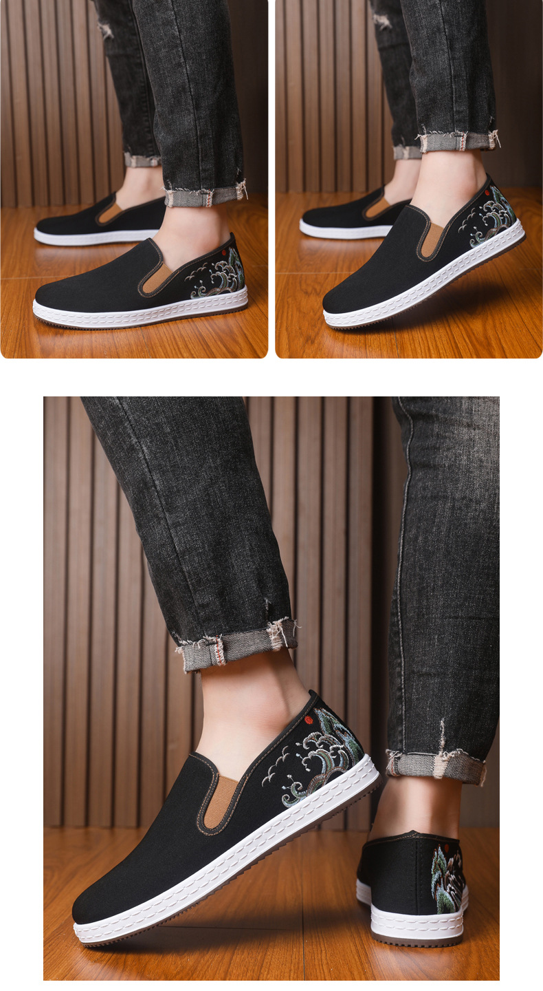 남성 신발 2025 새로운 스타일 중국 스타일 자수 캔버스 신발 민족 스타일 펌프 신발 슬립 온 캐주얼 올드 베이징 천 신발