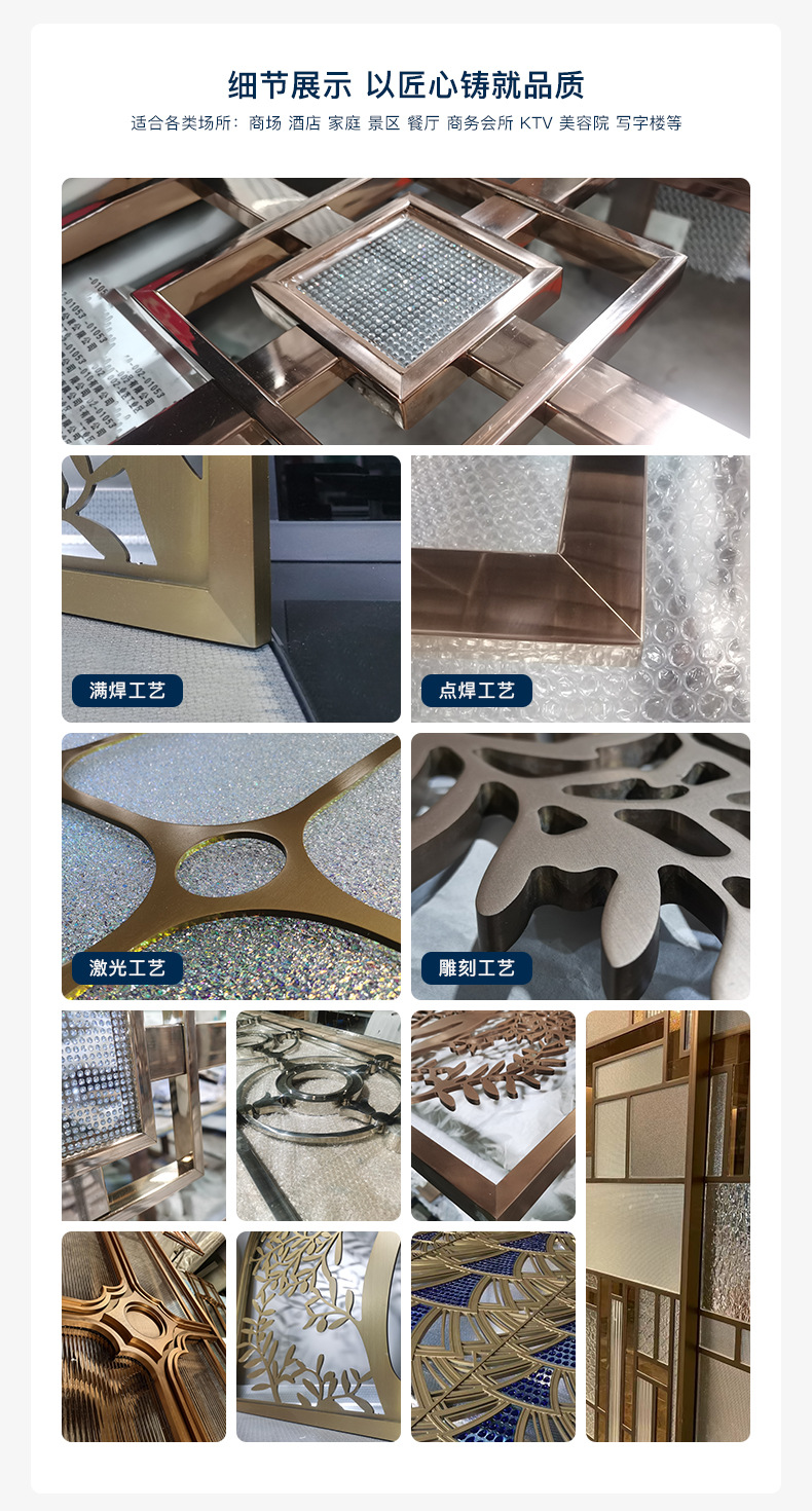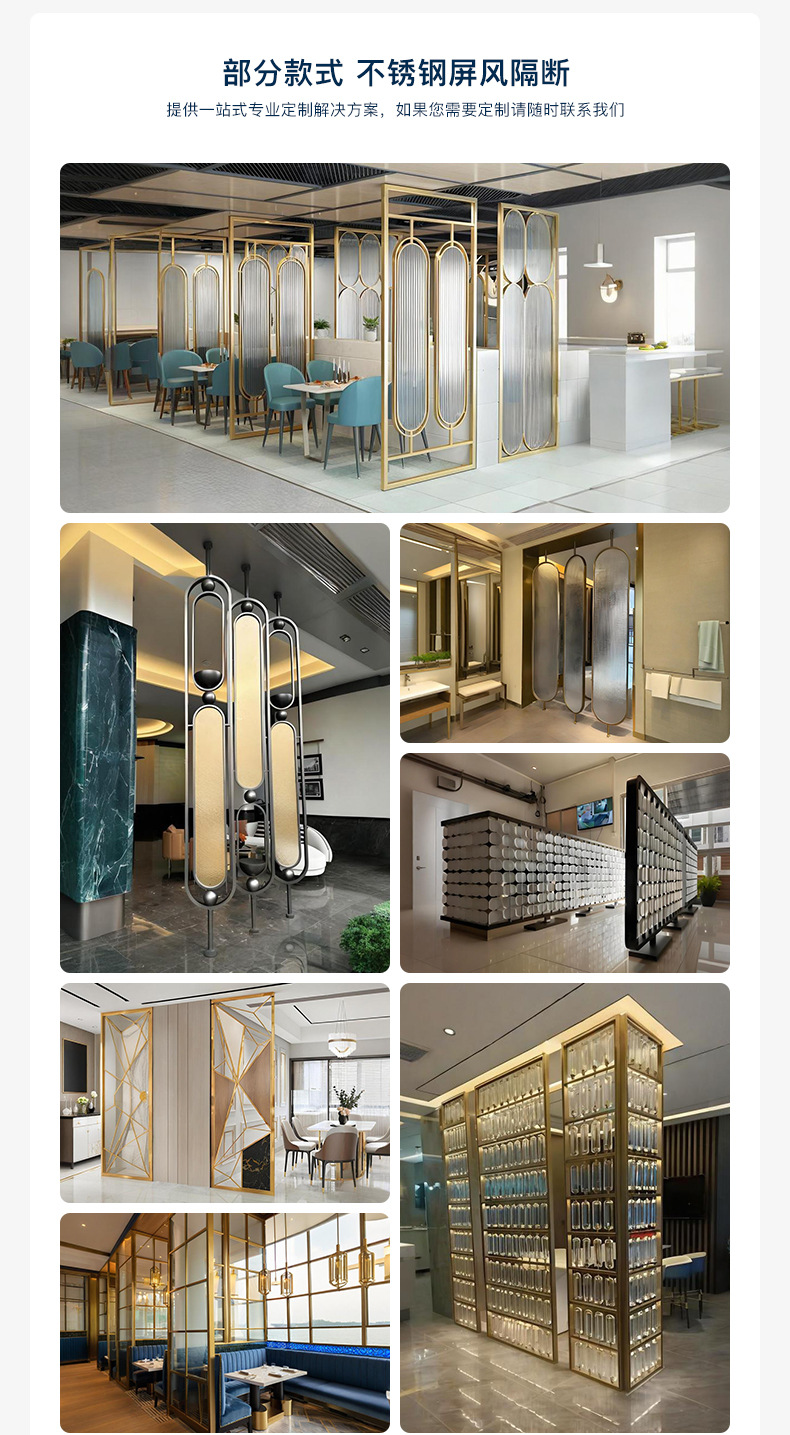 제조업체는 새로운 중국 스타일의 입구 및 호텔 유리 차단 장식 프로젝트를 위한 304 스테인레스 스틸 스크린 파티션을 맞춤 제작했습니다.