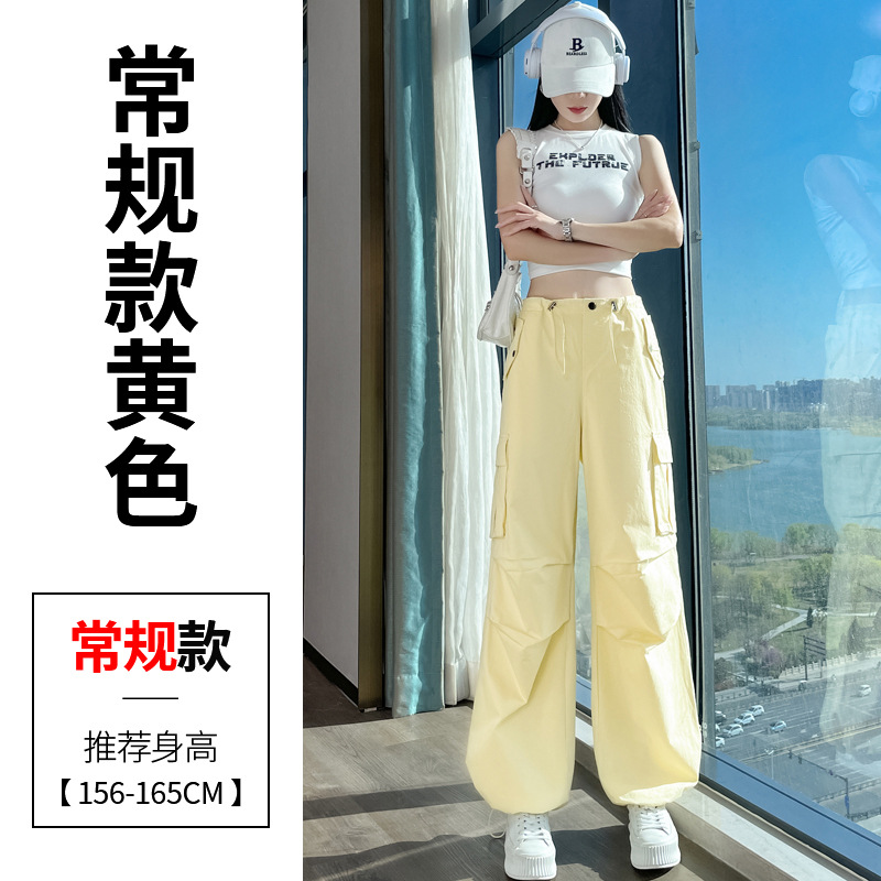 여성용 미국 노란색 작업복 2025 여름 얇은 작은 느슨한 점프 슈트 바지 스포츠 하이킹 바지스토어 가기