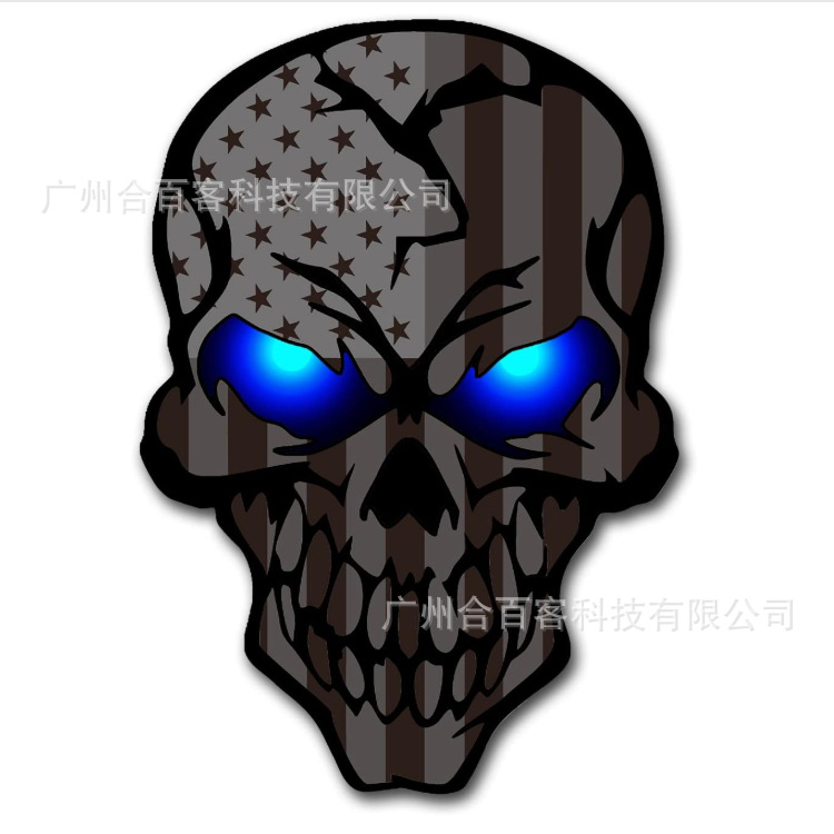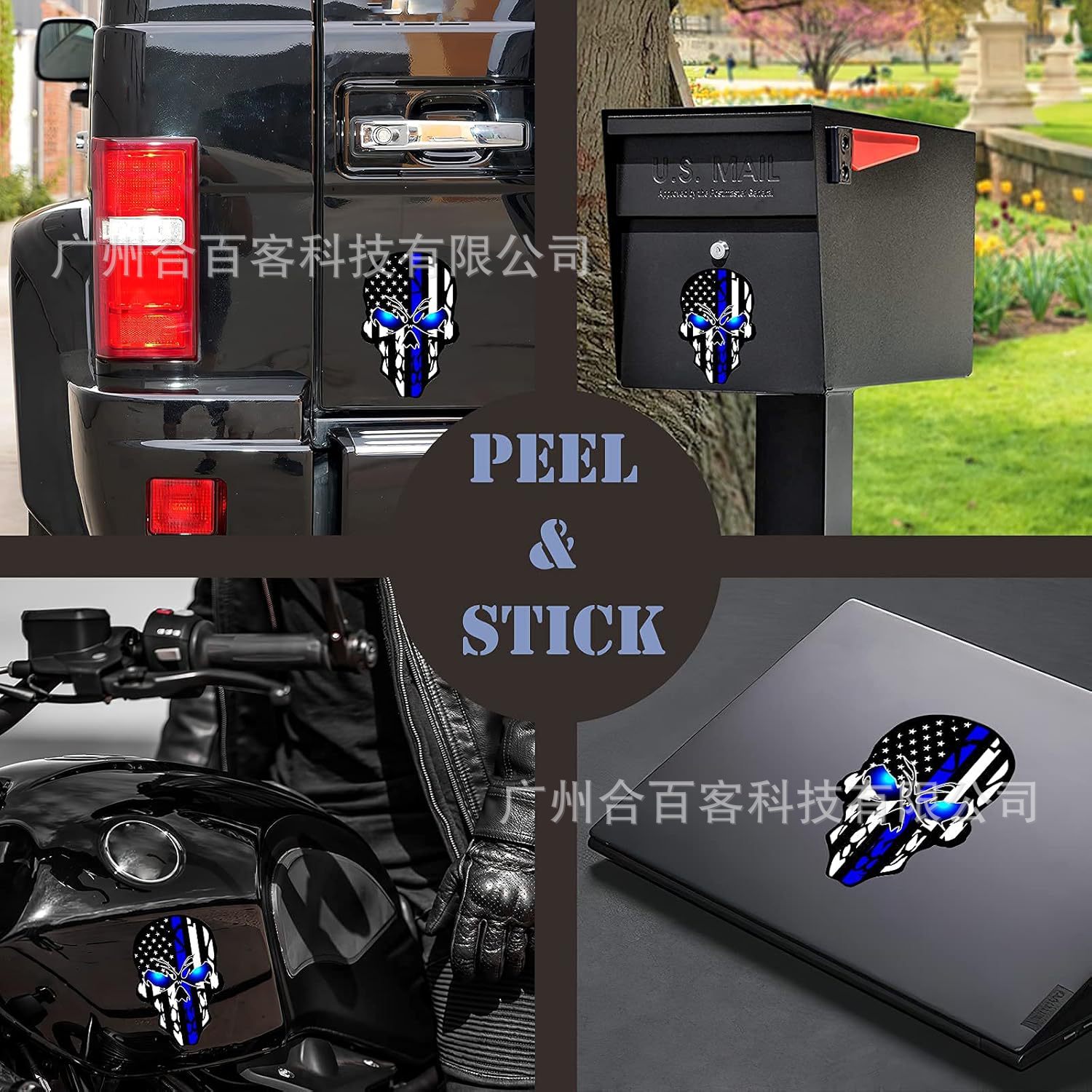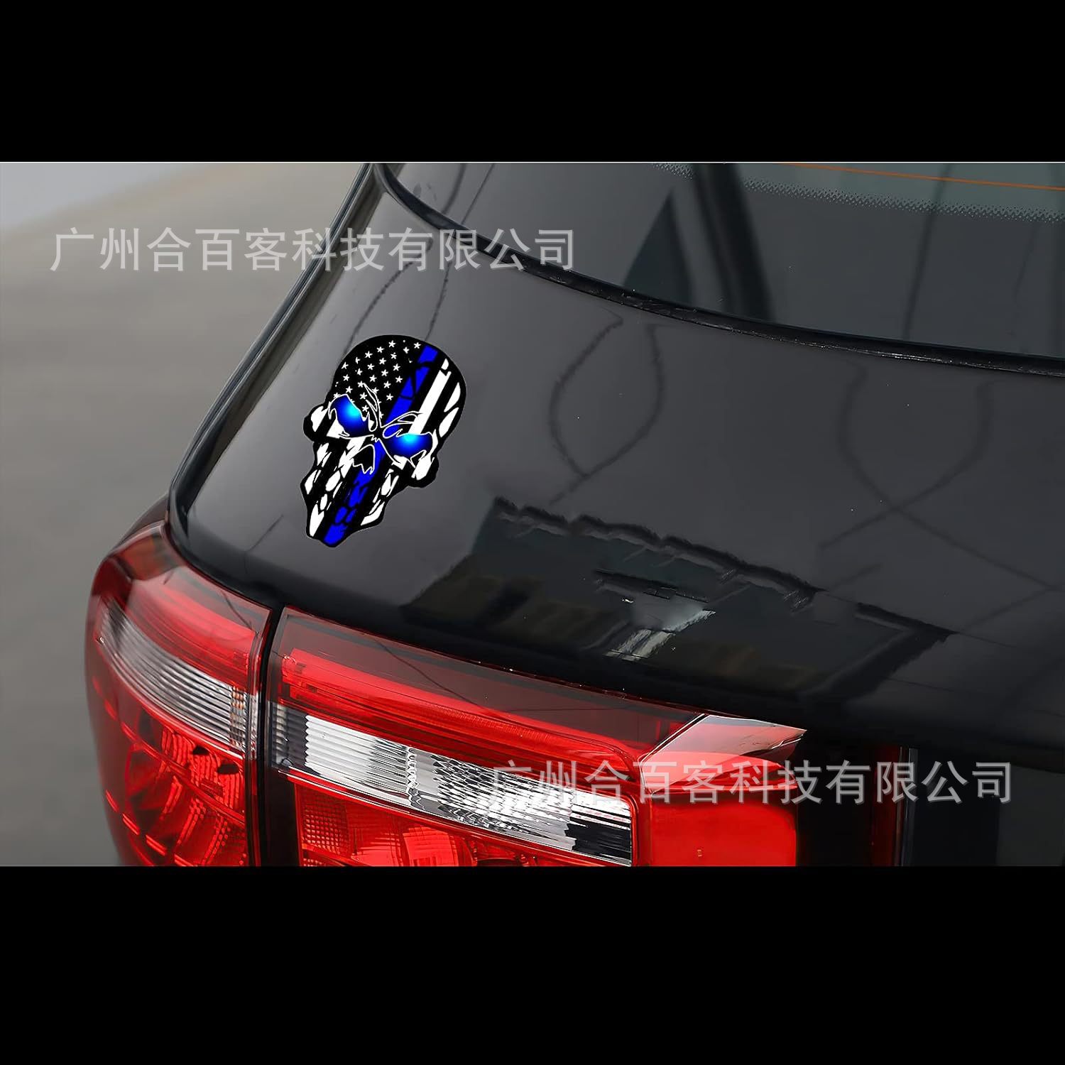 아마존 자동차 데칼 스티커 얇은 파란색 라인이 있는 해골 미국 국기 반사 범퍼 스티커 자석