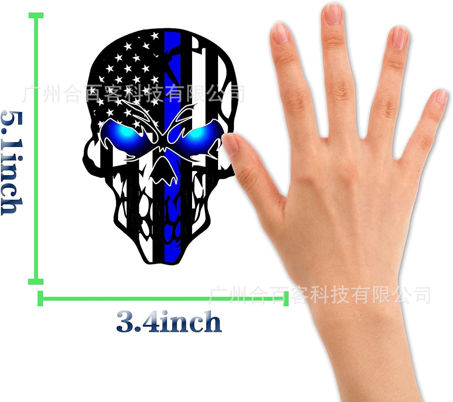 아마존 자동차 데칼 스티커 얇은 파란색 라인이 있는 해골 미국 국기 반사 범퍼 스티커 자석스토어 가기