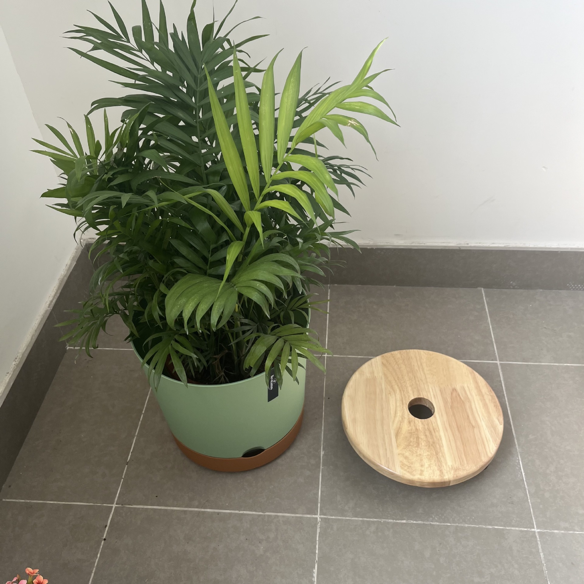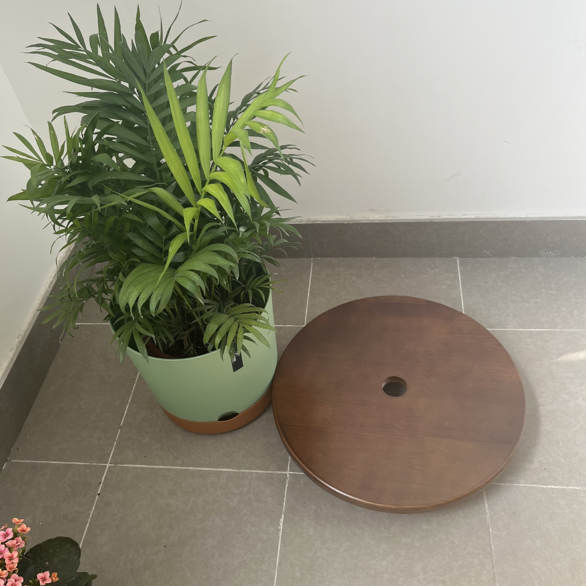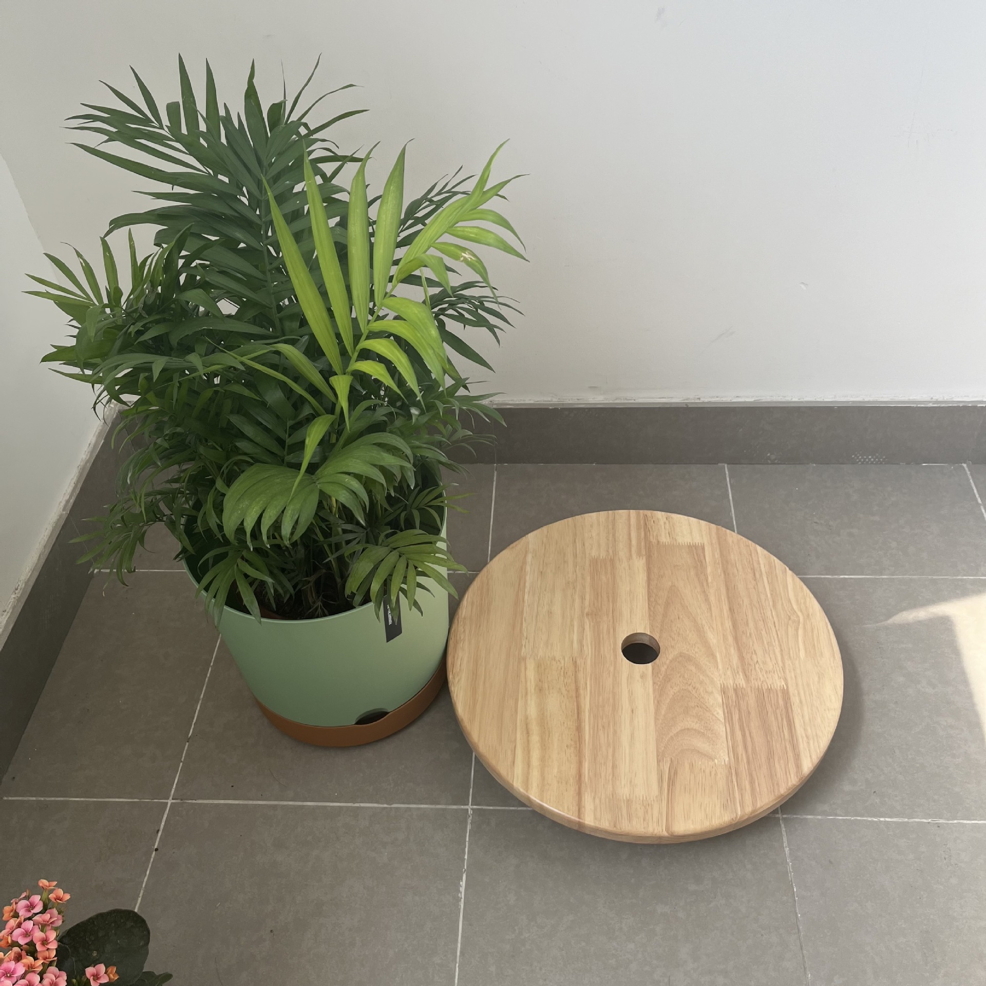 브레이크가 있는 견고한 목재 범용 휠, 조용한 이동식 화분 트레이, 롤러가 있는 두꺼운 원형 수조 베이스 꽃 홀더