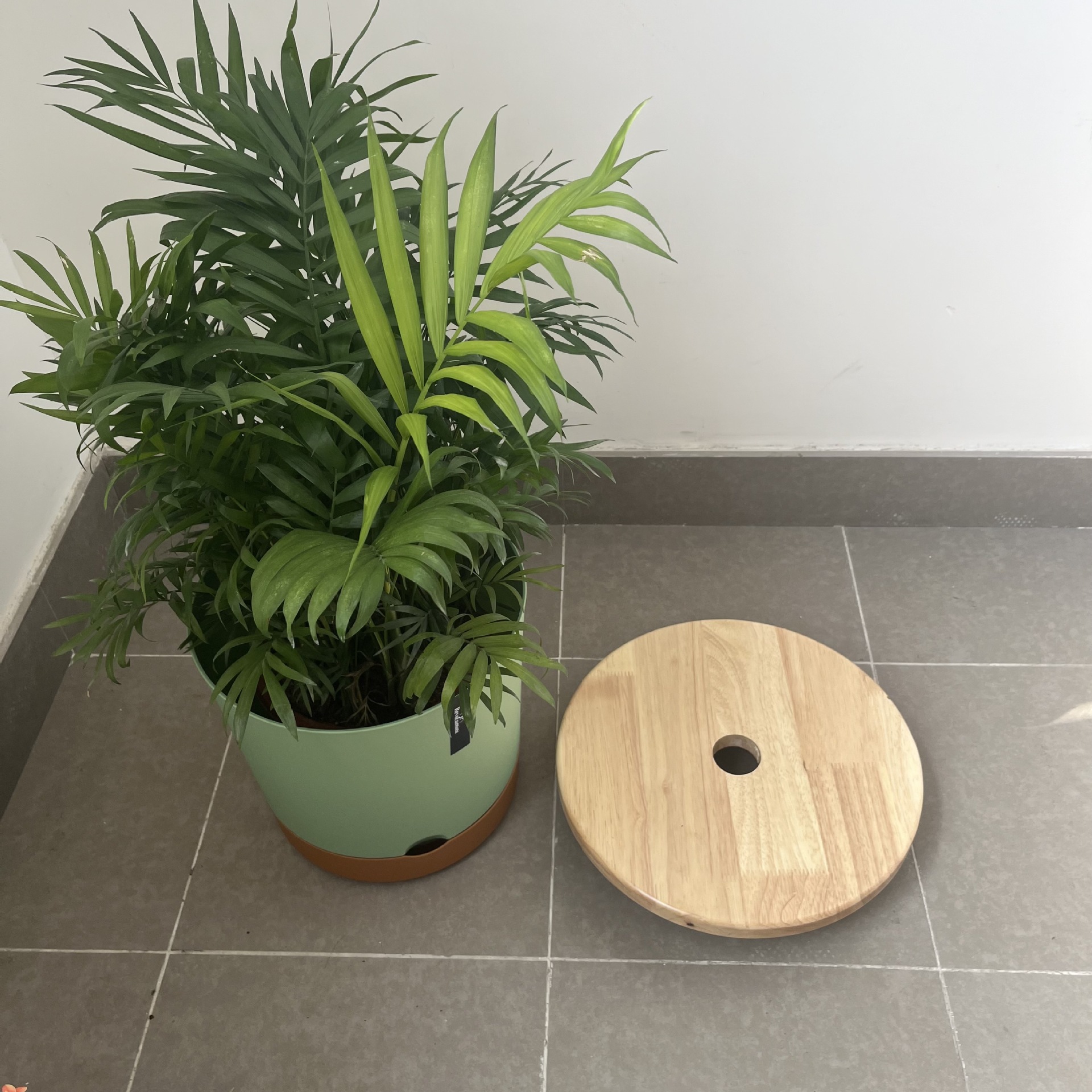 브레이크가 있는 견고한 목재 범용 휠, 조용한 이동식 화분 트레이, 롤러가 있는 두꺼운 원형 수조 베이스 꽃 홀더스토어 가기