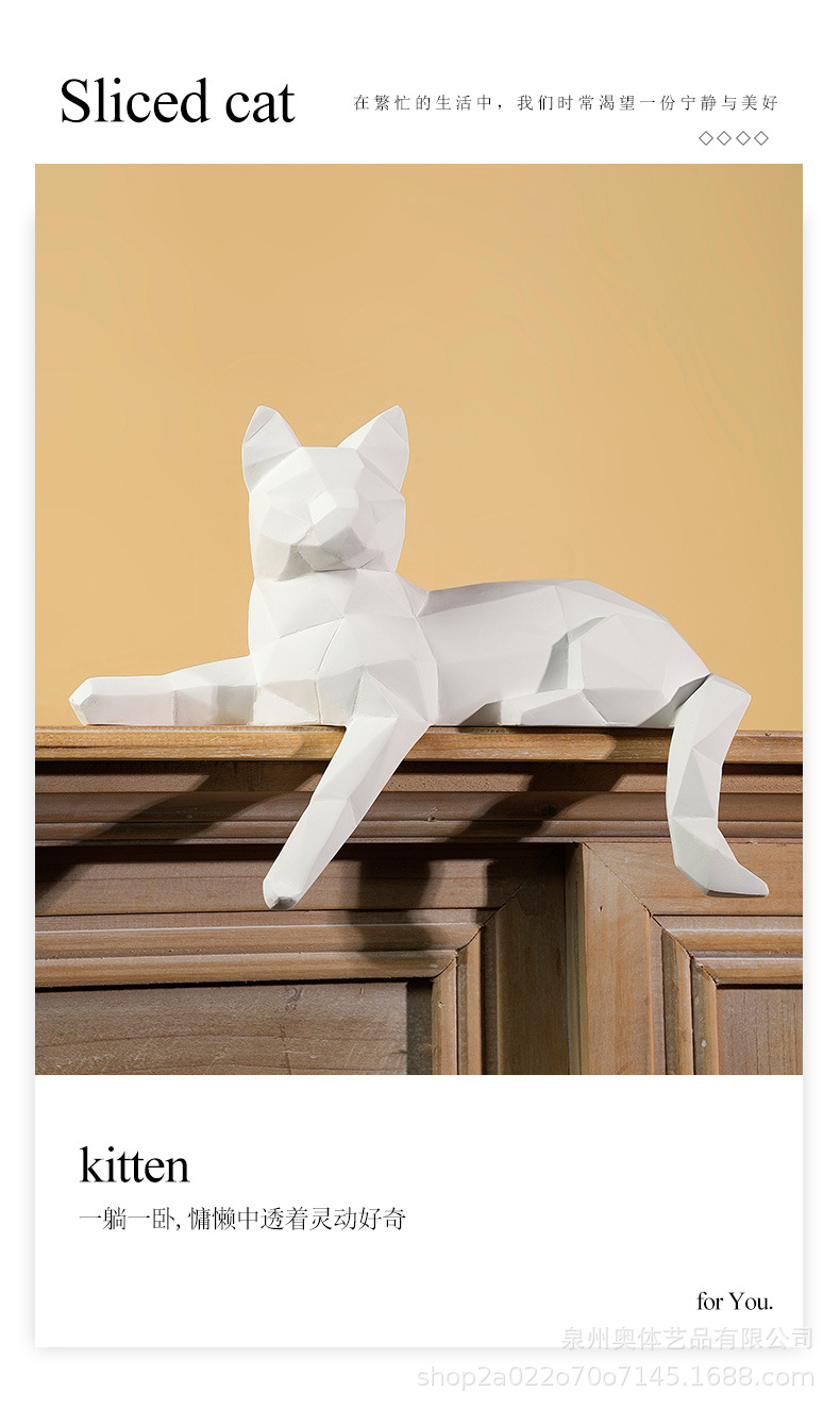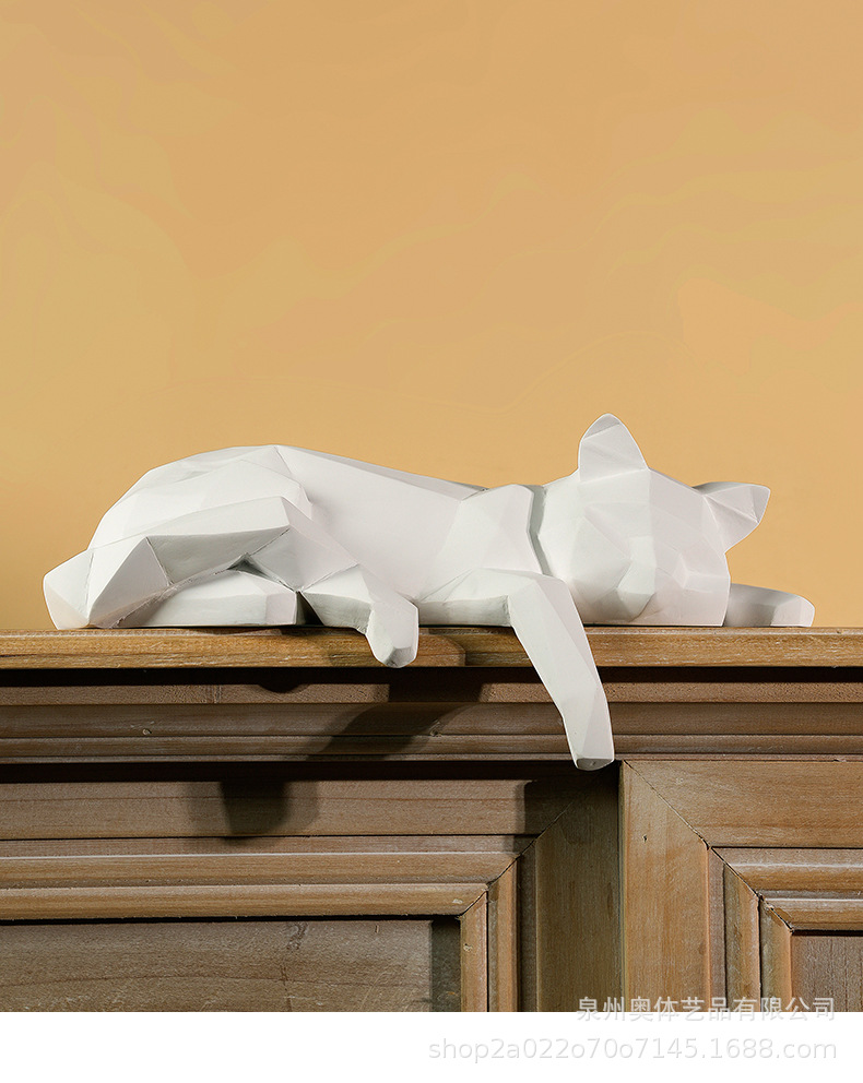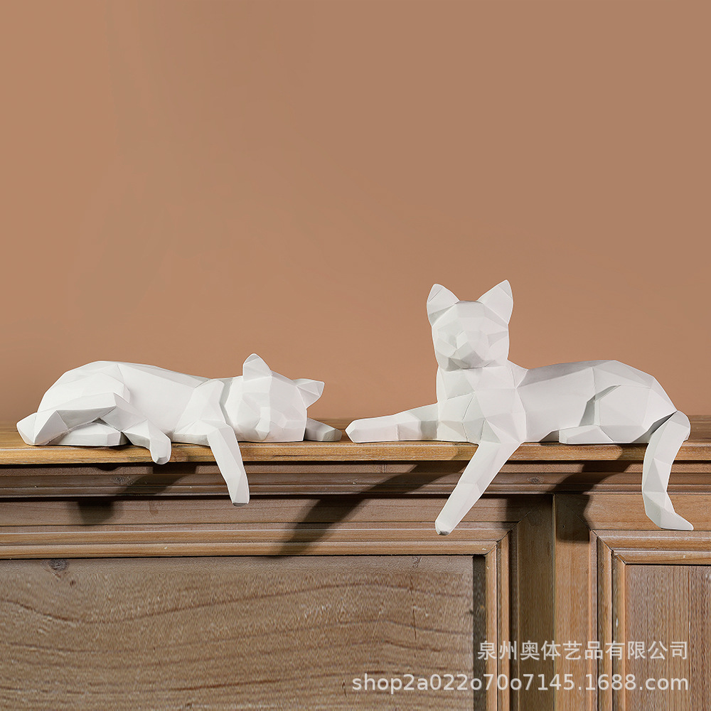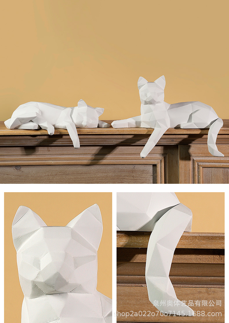 북유럽 스타일 수지 공예면 처리 된 고양이 조각 기하학적 면 처리 된 거실 홈 디자인 크리 에이 티브 장식품스토어 가기