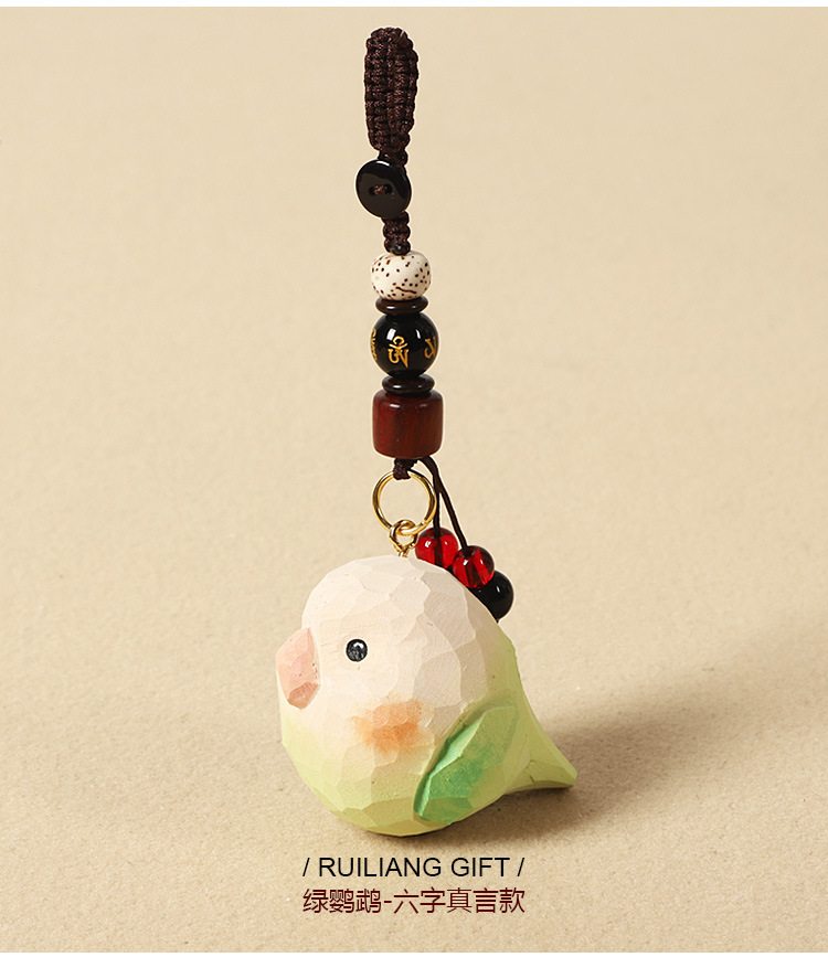 • 나무 조각 녹색 앵무새 - 여섯 글자 만트라